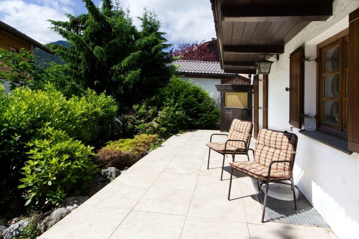 Es ist ihr geräumiger Stützpunkt für alle Aktivitäten in der Region. Es besitzt im Obergeschoss zwei getrennte Schlafzimmer (2 Einzel-, sowie ein Doppelbett) und ein Badezimmer mit DU/WC und eine Waschmaschine. Ein Ostbalkon gibt den Blick zum Karwendelgebirge frei. Im Erdgeschoss können Sie sich in der neuen Küche versorgen und in der gemütlichen Ecksitzgruppe verweilen. Eine Leder Sitzkombination lädt zur Entspannung ein. Vom Wohnzimmer zweigt die großzügige Terasse mit Liege- und Sitzmöbeln ab. Ein PKW-Stellplatz befindet sich direkt am Haus. Ein WLAN-Anschluss, sowie ein Flachbild-TV ist selbstverständlich vorhanden. Der Ortskern und Einkaufsmöglichkeiten sind auch zu Fuß schnell erreicht.