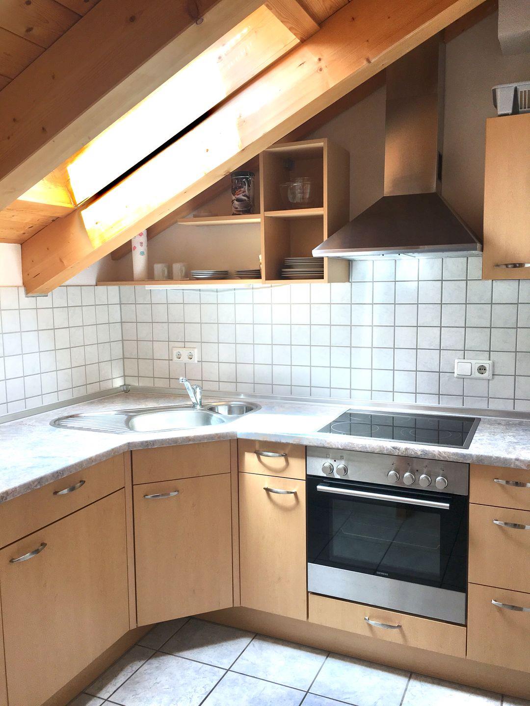 Die Ferienwohnung ist nicht nur gemütlich, sondern auch bestens ausgestattet, um Ihnen während Ihres Aufenthalts höchsten Komfort zu bieten. Genießen Sie die behagliche Fußbodenheizung, die in der kälteren Jahreszeit eine wohlige Wärme verbreitet. Die offene Küche, die sich zum Wohnzimmer hin erstreckt, ist mit modernen Geräten ausgestattet, darunter ein Herd, Backofen, Mikrowelle, Kühlschrank, Kaffeemaschine, Toaster und Wasserkocher. Hier können Sie Ihre kulinarischen Fähigkeiten entfalten und die frischen Zutaten der Region zubereiten. Für Ihre Bequemlichkeit stehen Ihnen auch Bügelbrett und Bügeleisen zur Verfügung.