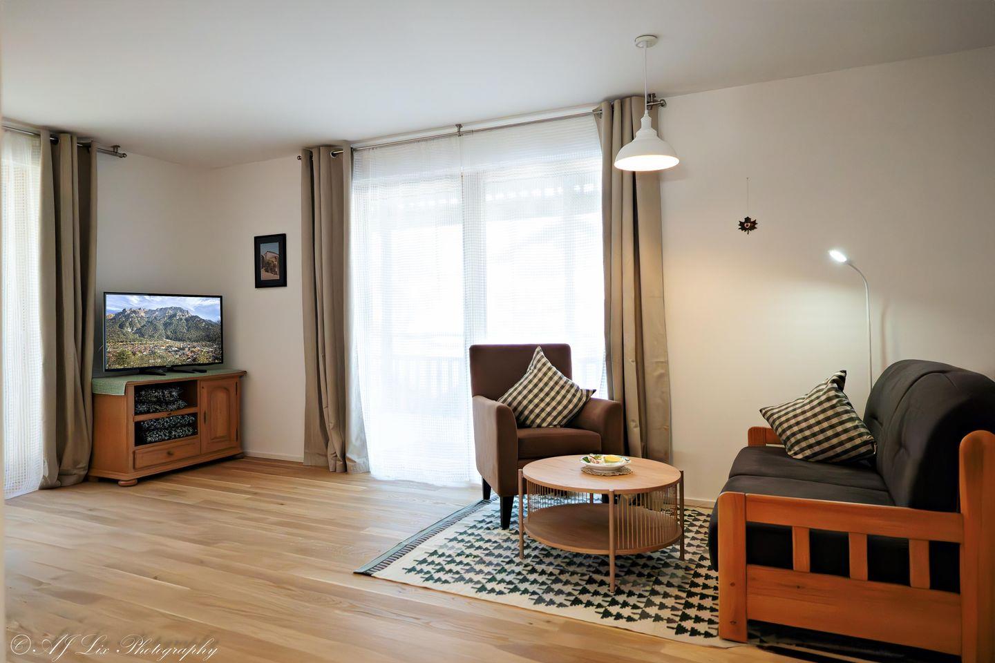 Die Fewo Gretchen bietet Platz für bis zu zwei Gäste und umfasst ein Schlafzimmer sowie ein gemütliches Wohnzimmer mit einer Sofaecke. Eine offene Küche, die zum Essbereich hin integriert ist, ermöglicht es Ihnen, kulinarische Köstlichkeiten zu zaubern, während Sie den Blick auf die beeindruckende Berglandschaft genießen. Die Küche ist voll ausgestattet mit modernen Geräten, darunter ein Induktionsherd, ein Backofen, eine Spülmaschine und ein Kühlschrank mit Gefrierfach, damit Sie all Ihre Kochbedürfnisse erfüllen können.