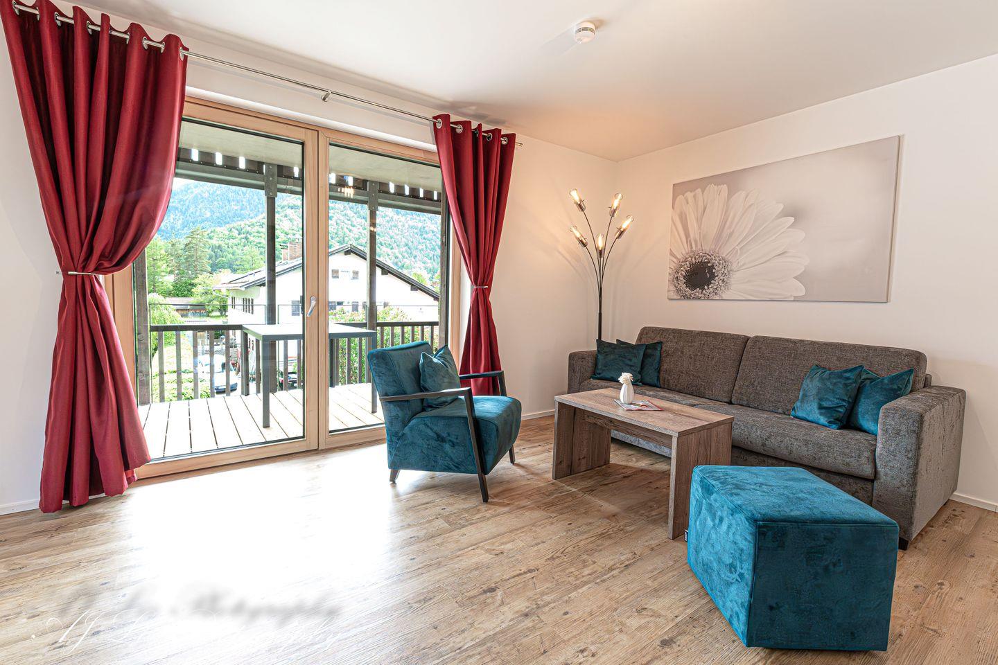 Die brandneue Fewo Karwendeltraum empfängt Sie mit einem Schlafzimmer, einem Arbeitszimmer mit Schlafmöglichkeit, einer tollen, voll ausgestatteten Durchgangsküche, einem ganz neuen Bad mit bodengleicher Dusche und traumhaften Aussichten auf den Kranzberg Wetterstein, links bis zum Karwendel und auf der anderen Seite bis zur schönen Kirche St.-Peter und Paul. Perfekt für bis zu 4 Gäste! Jetzt schnell Buchen!