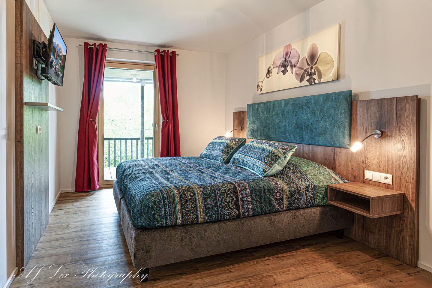 Natürlich findet sich hier ebenso ein Schreibtisch zur Nutzung als Home Office im Urlaub und nochmals ein Flachbildfernseher.