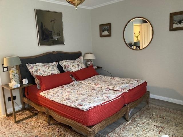 Im Schlafzimmer, das mit einem Doppelbett ausgestatttet ist, befindet sich auch ein separater Arbeitsplatz in einen Sekretär. Ein Drucker ist vorhanden.