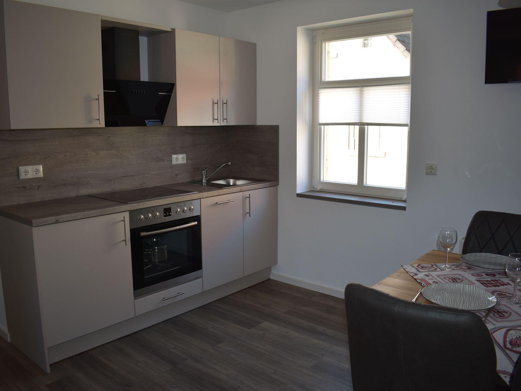 Wohn/Essküche: Die Küche ermöglicht kochen durch die Ausstattung eines Kühlschranks mit Gefrierfach, Backofen mit Cerankochfeld, Spülmaschine, Spülmittel, Küchenrolle, Senseo Kaffeemaschine für Pats und Filterkaffee, Wasserkocher und Toaster. Geschirr und Gläser sind in ausreichender Menge vorhanden. Für unsere kleinen Gäste steht ein Kinderstuhl bereit. Des Weiteren ist die Wohnung mit einem Sat-Smart-TV ausgestattet