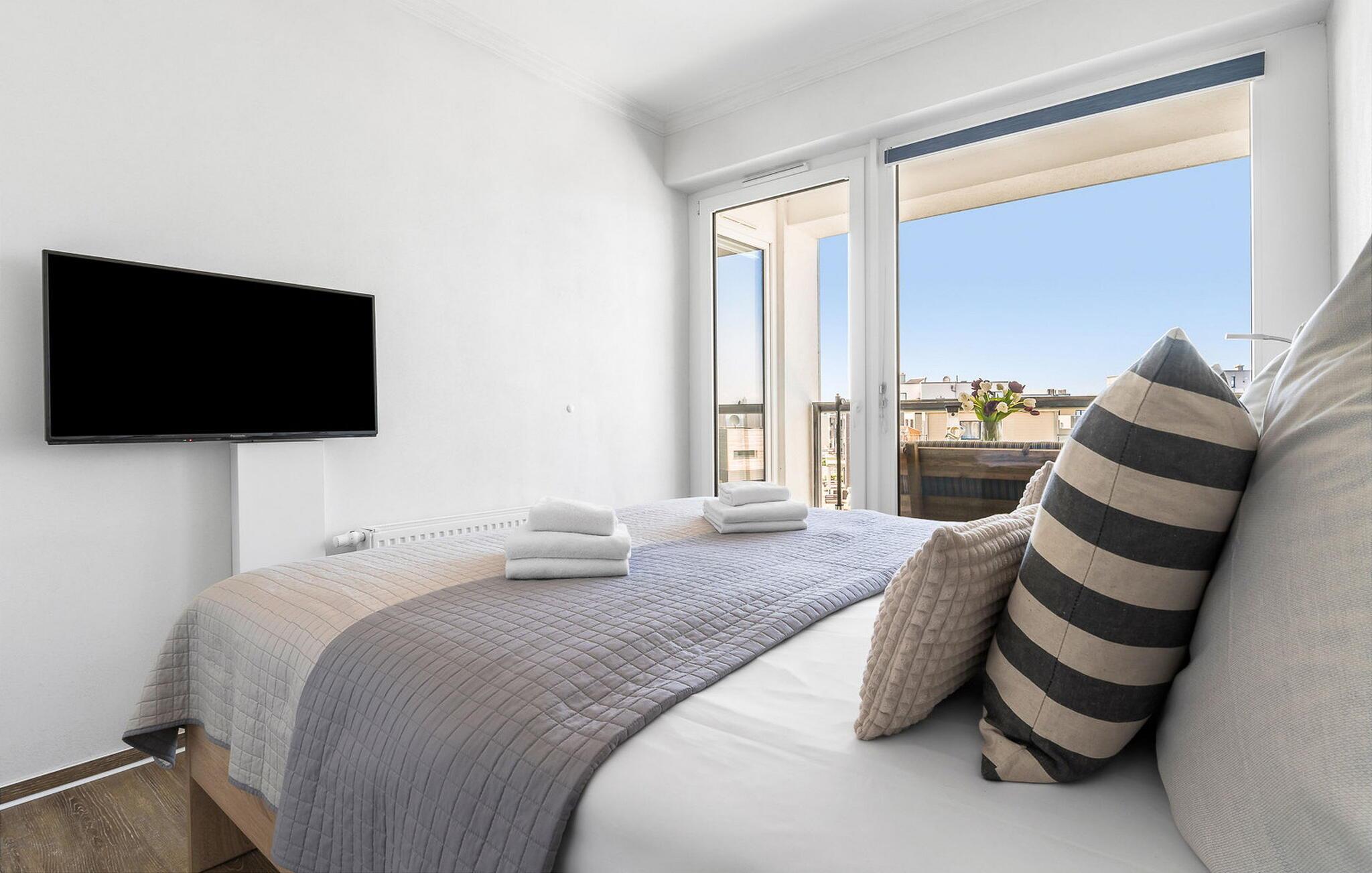 Det fuldt udstyrede køkken har alt hvad I behøver til jeres ophold, herunder en opvaskemaskine og mikroovn. Den separate spiseplads har plads til op til 4 personer. Fra alle vinduer kan I nyde den vidunderlige udsigt over havnen og Østersøen.