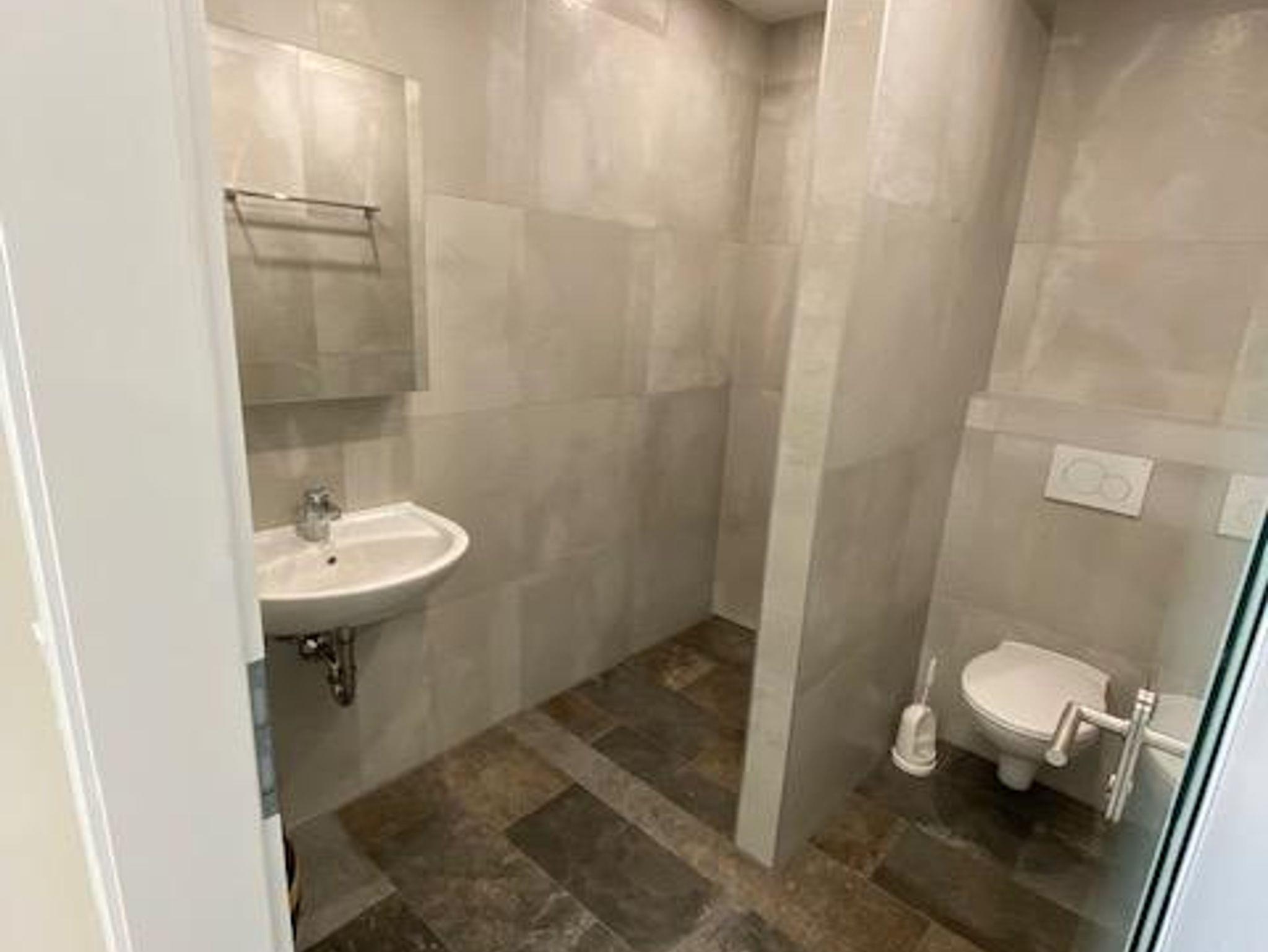 Bad mit Dusche und WC, Fön, Spiegelschrank