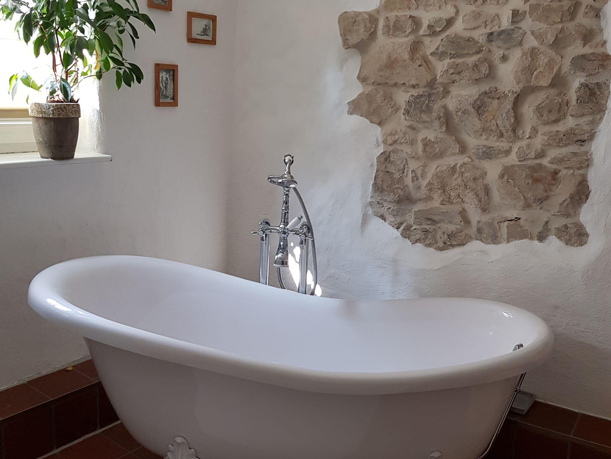 Liebevoll renoviertes Ferienhaus mit gut ausgestatteter Küche incl. Holzherd, großzügigem Badezimmer mit freistehender Badewanne und gemütlichem Wohnzimmer. Das gesamte Haus steht ihnen alleine zur Verfügung.