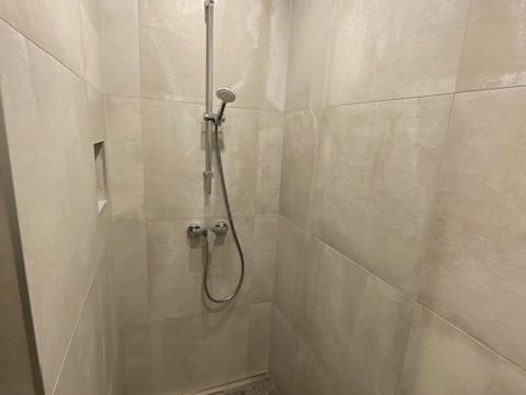 Bad mit Dusche und WC, Fön, Spiegelschrank