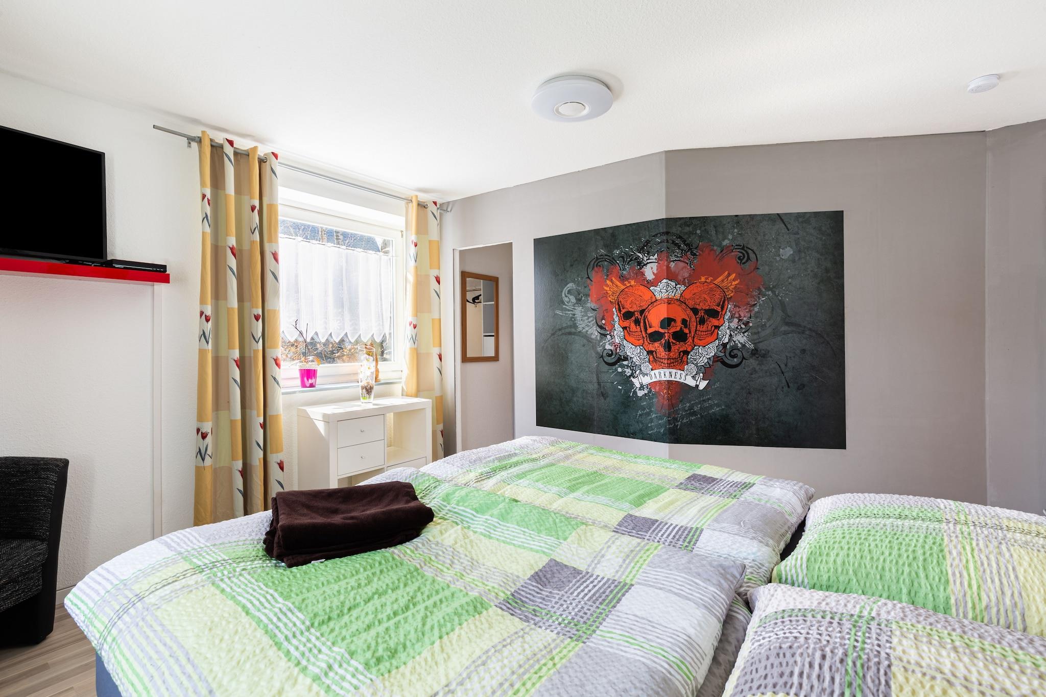 Ejendommen er beliggende i det klimatiske kursted Monschau i den smukke turistregion Eifel, på den tysk-belgiske grænse. Denne lejlighed i stueetagen er moderne og smagfuldt indrettet, og brændeovnen sørger for en hyggelig atmosfære om aftenen. Tilbring kvalitetstid sammen på den overdækkede terrasse i din private have. En infrarød betalt sauna er også tilgængelig på stedet, som kan give dig rigelig foryngelse og hjælpe med at slippe den ophobede stress. Der er en rummelig overdækket terrasse, hvor du kan dvæle med din morgenkaffe og en privat have med møbler, hvor du kan nyde en sund morgenmad og slappe af efter en aktiv dag udendørs. Monschau er med sine historiske bindingsværkshuse og snoede gader ideel til afslappede gåture. Udforsk vandrestier med tema, der fremhæver de fantastiske naturlige omgivelser. Udflugter omfatter Monschau Slot, museet "Red House", en historisk sennepsmølle, sommerkælkebakken, Eifel National Park, Aachen og Bad Münstereifel. En nærliggende sø byder på ensomhed og muligheder for refleksion, mens en offentlig swimmingpool kun 4 km væk lader dig køle af i varme somre. Du kan også bruge en gasgrill om aftenen og nyde lækker grillmad midt i dine kæres glæde og latter. Huset er udstyret med central oliefyr for at holde dig varm om vinteren. De voksne kan hygge sig med festspil, mens børnene kan beskæftige sig med de mange legetøj og et tv på ejendommen. Der er også en barneseng og en høj stol til bekvemmelighed for små børn og forældre. Der er parkering på stedet for at holde dine biler sikre og fri for ridser.