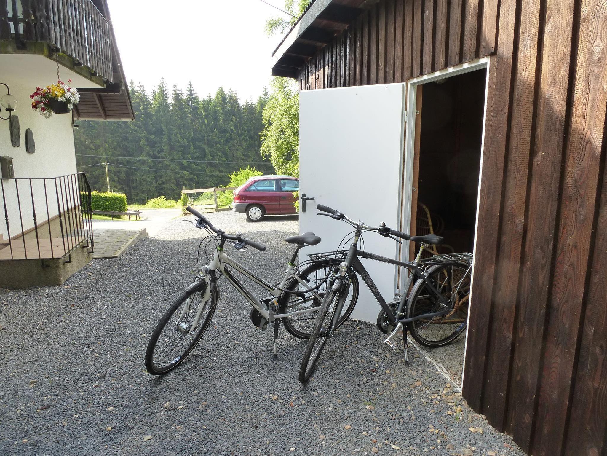 Auch die abschließbare Fahrradgarage dürfen Sie gerne nutzen. Sie ist ausgestattet mit Fahrrad-Reparaturwerkzeug und Stromanschluss.