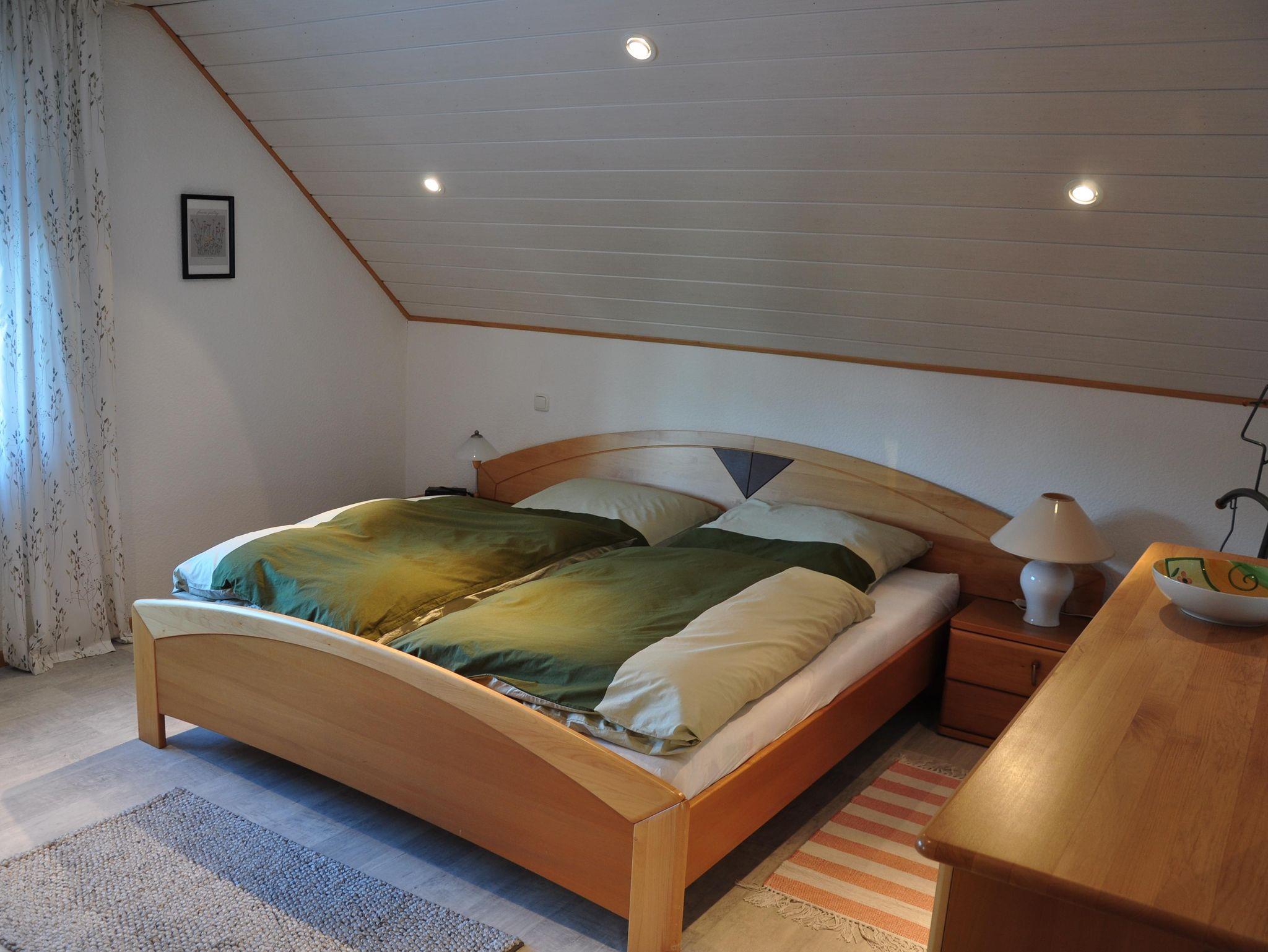 Ein Schlafzimmer ist mit einem einem Doppelbett (180x200) ausgestattet und ein weiteres Zimmer ist mit zwei Einzelbetten (90x200) ausgestattet.