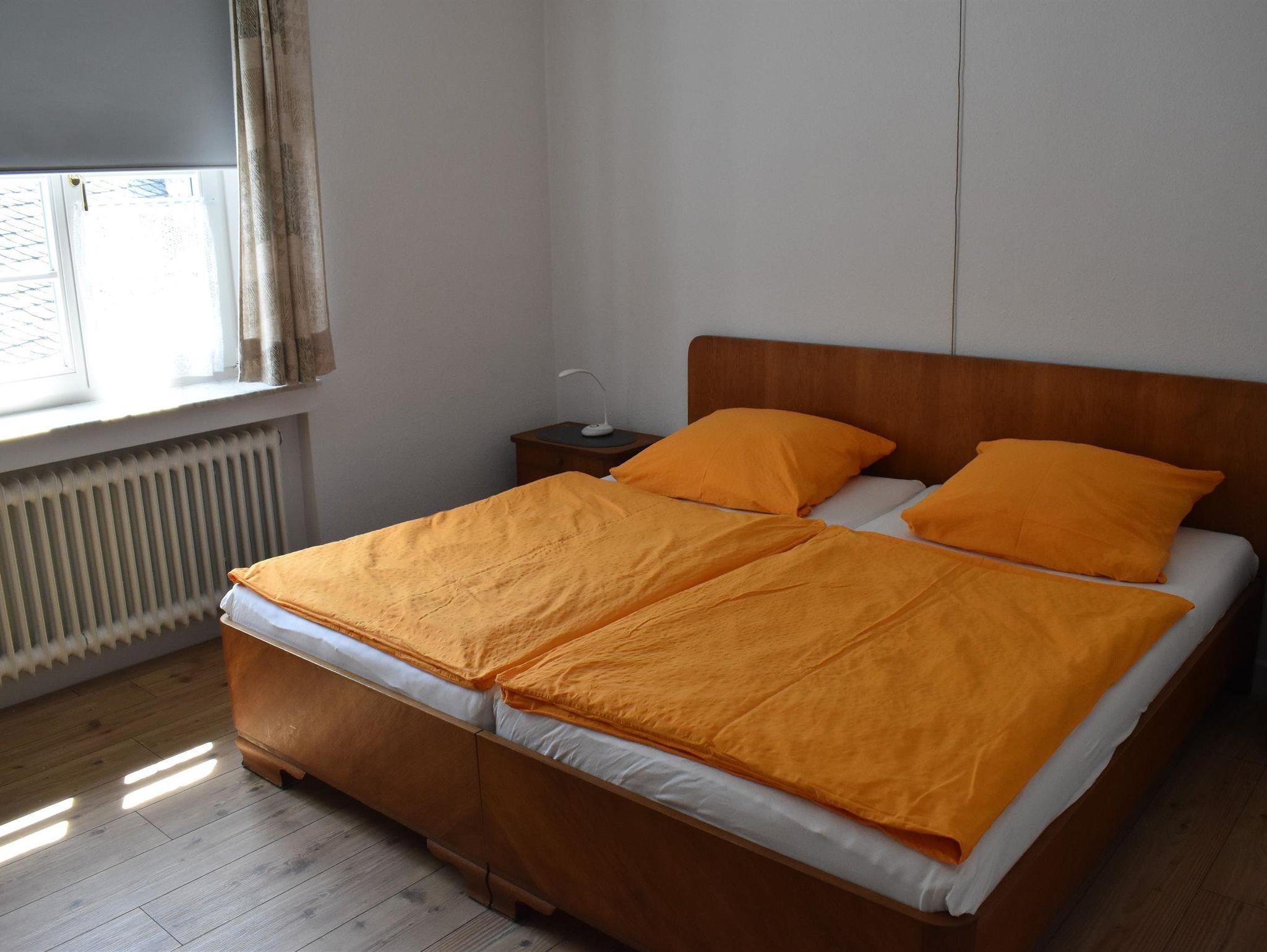 Die Ferienwohnung liegt in dem Direktorenhaus der ehemaligen Seidenfabrik. Sie hat ein Wohn-, Schlaf-, Badezimmer mit DU/WC, eine separate Küche und eine Gartenterrasse. Im Wohnzimmer steht eine Schlafcouch, 1,6 m x 2,0 m. Um dort schlafen zu können muss allerdings der Tisch auf Seite geschoben werden. Es wird eng, siehe Grundriss! Sie ist zentral und ruhig gelegen und nur ca. 250 m von der Bushaltestelle Parkhaus Laufenstraße entfernt. In 3-5 Minuten erreichen Sie den Marktplatz. Wir gehören zu den wenigen Gastgebern in der Altstadt, die Ihnen einen eigenen Parkplatz kostenlos zur Verfügung stellen können. Wanderer sind HERZLICH WILLKOMMEN.