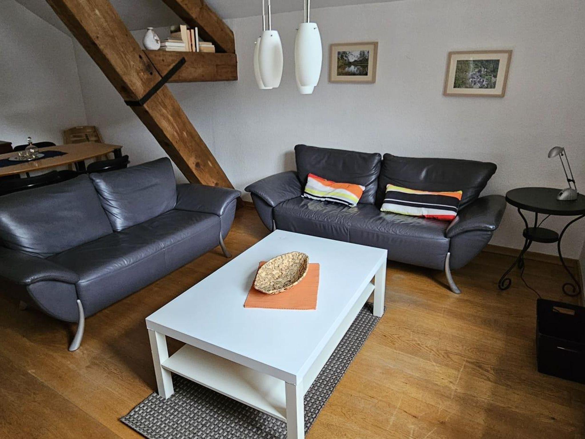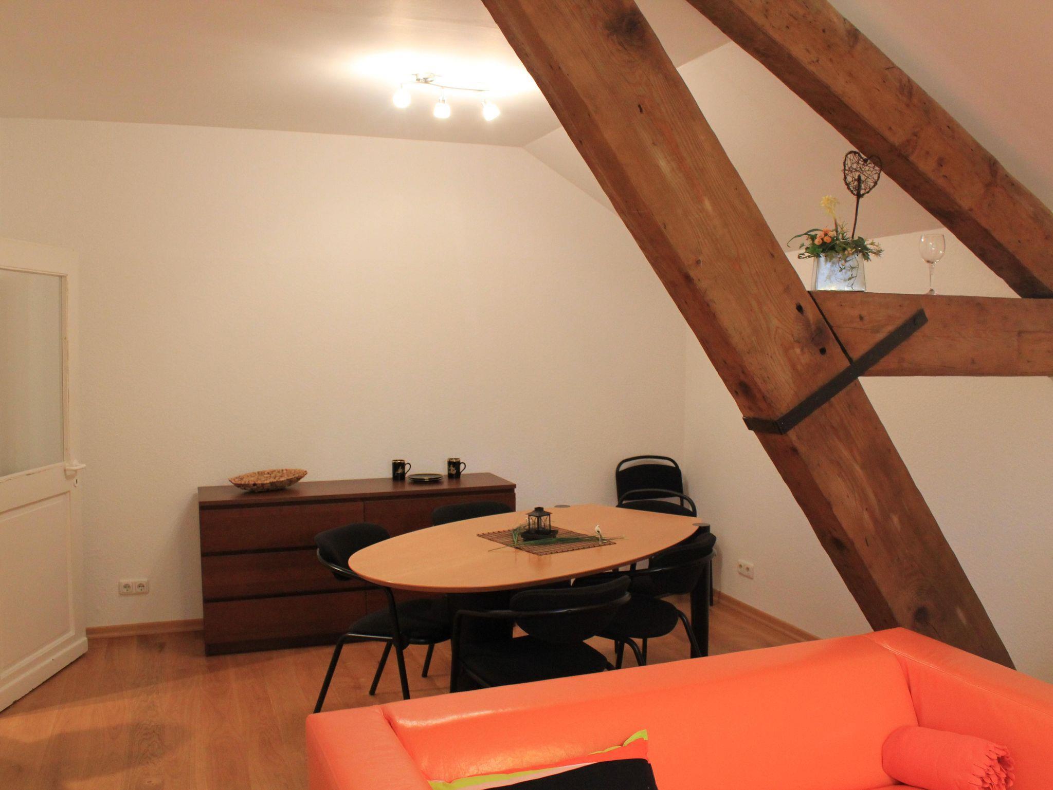Die Wohnung befindet sich in einem denkmalgeschützten Bruchsteinhaus.