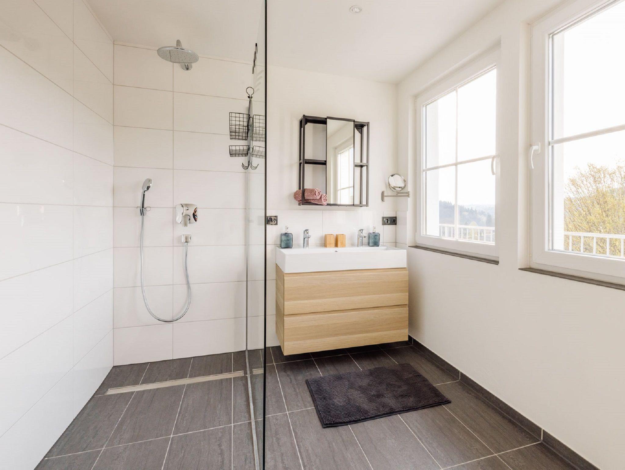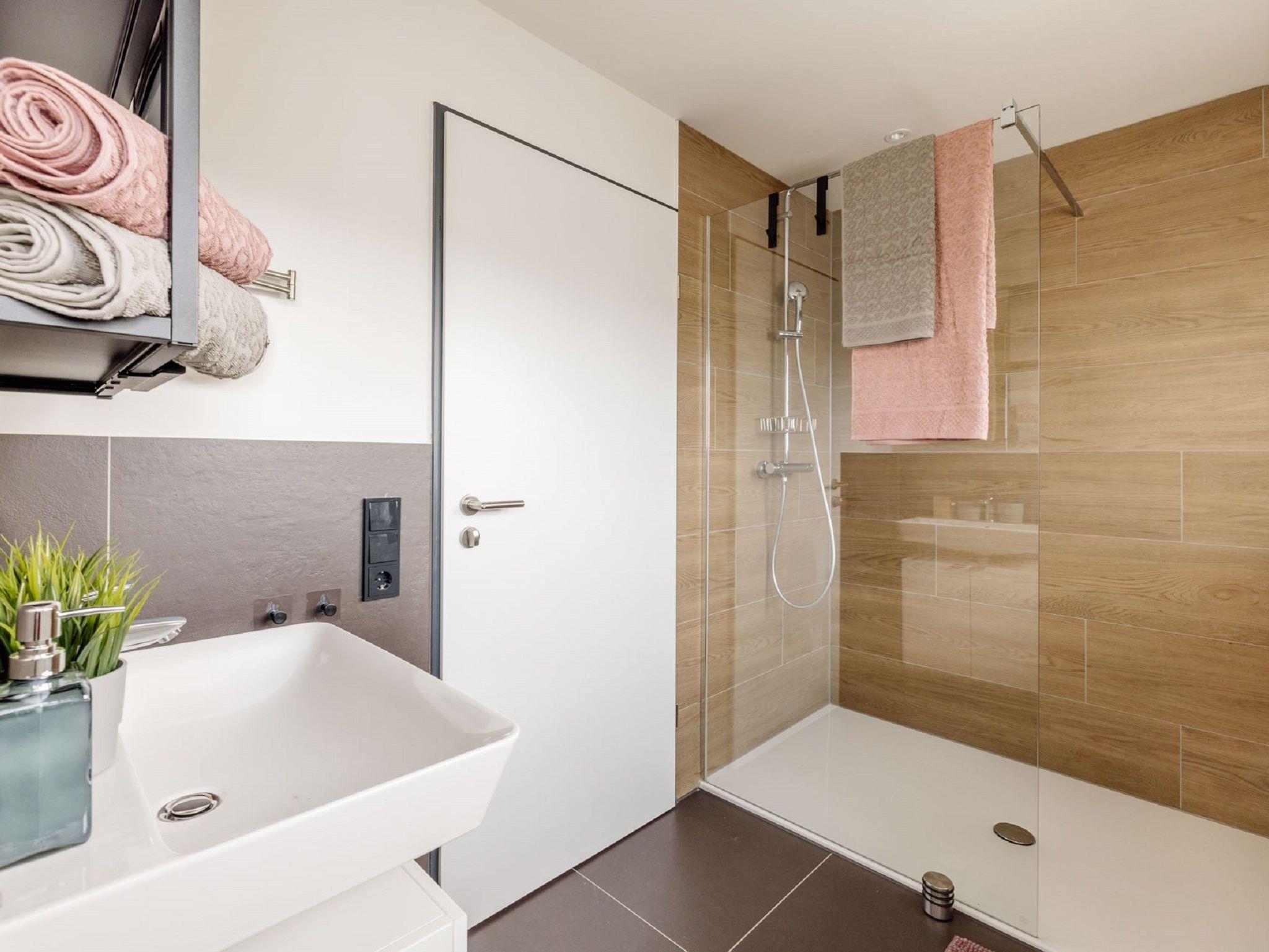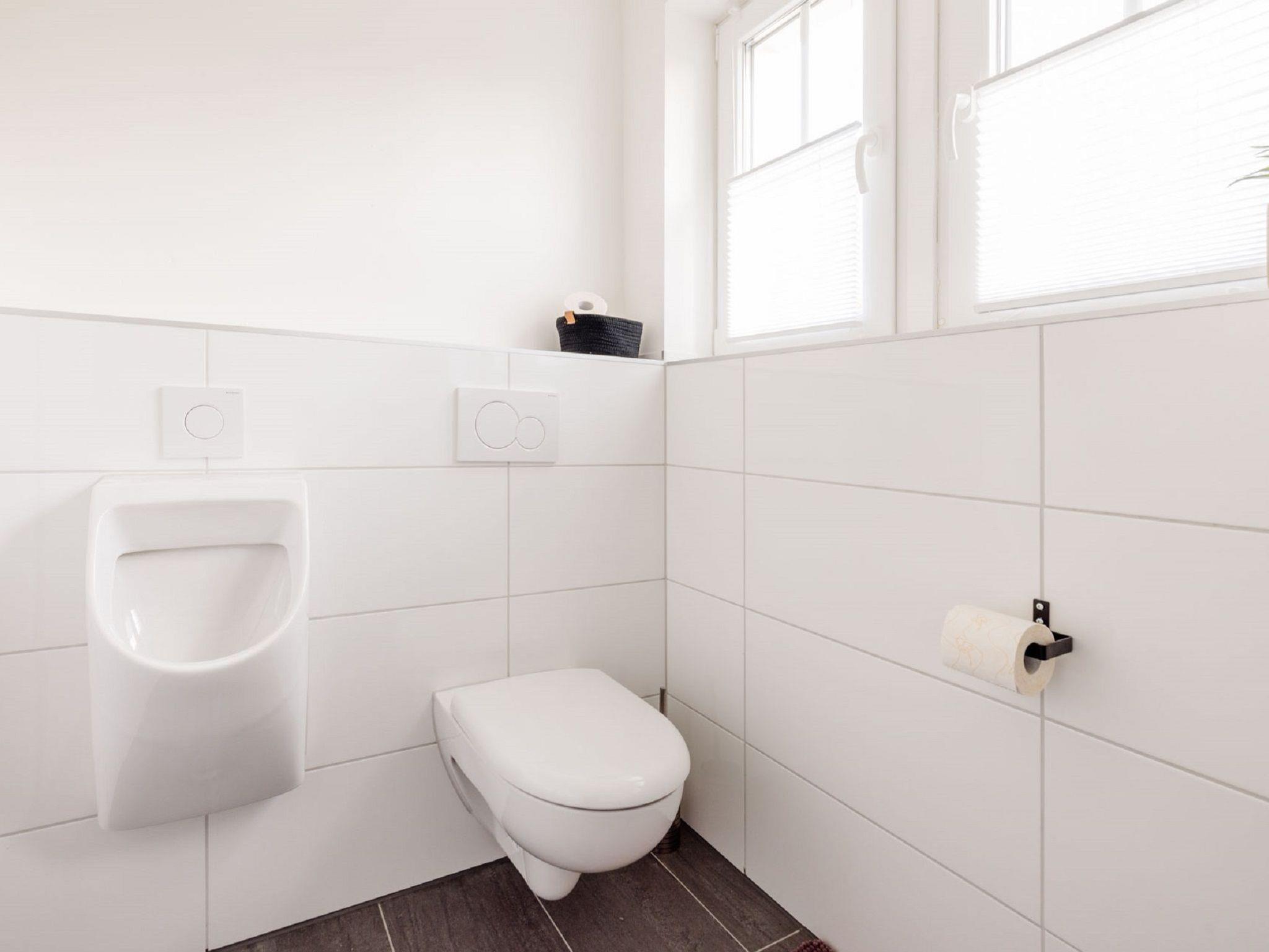 Die 2 modernen Bäder bieten jeweils 1 Dusche, WC und Waschbecken. Zusätzlich gibt es 2 Gäste-WC´s im Erdgeschoss.