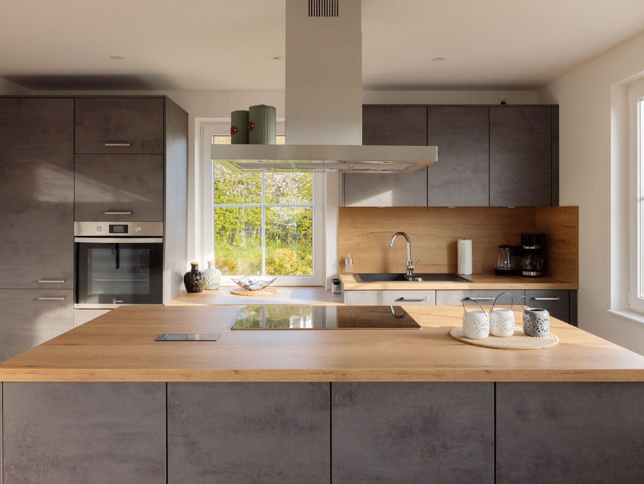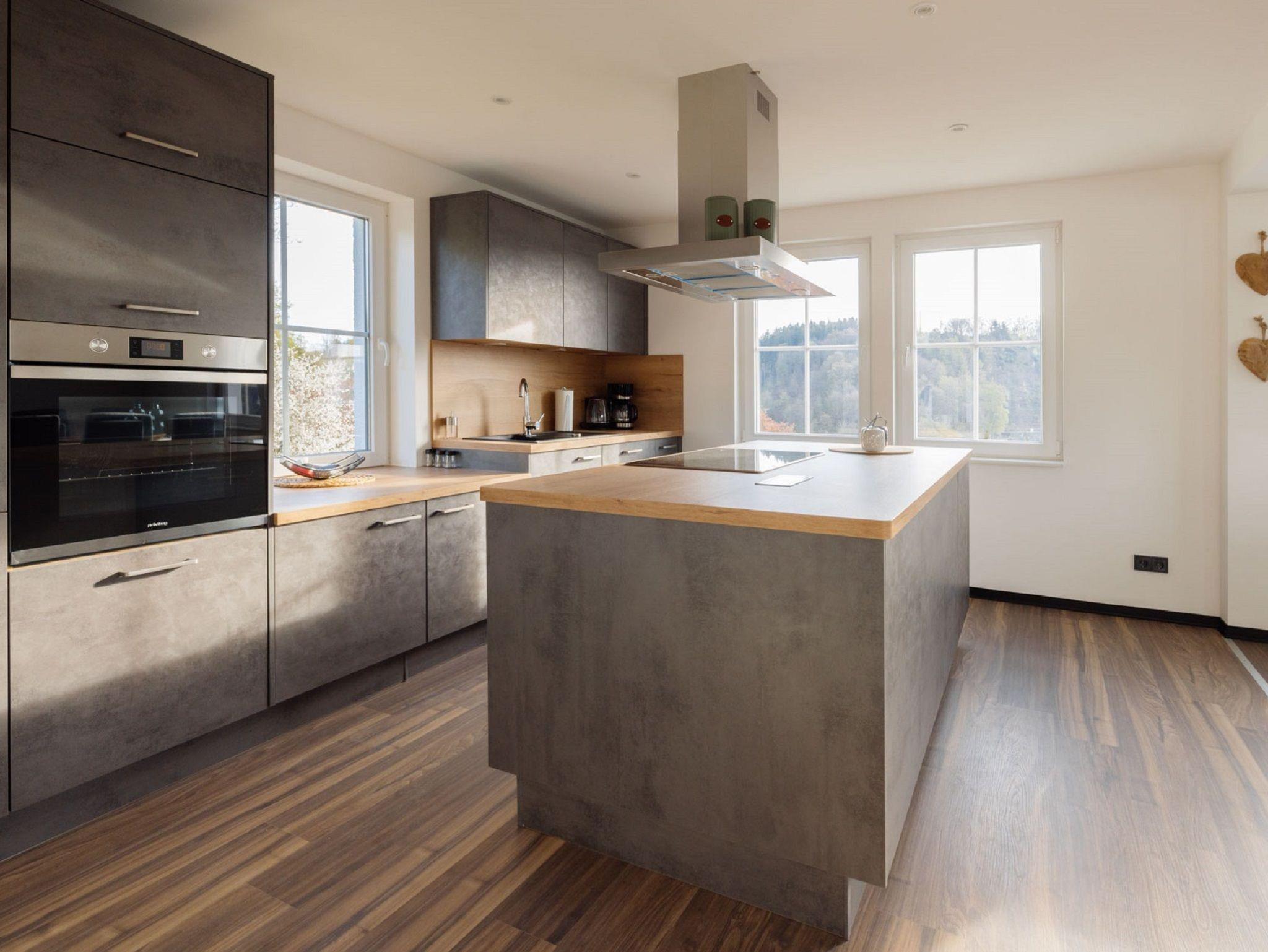 Einbauküche mit Backofen, Spülmaschine, Mikrowelle, Kühlschrank inklusive Gefrierfach und Filterkaffeemaschine