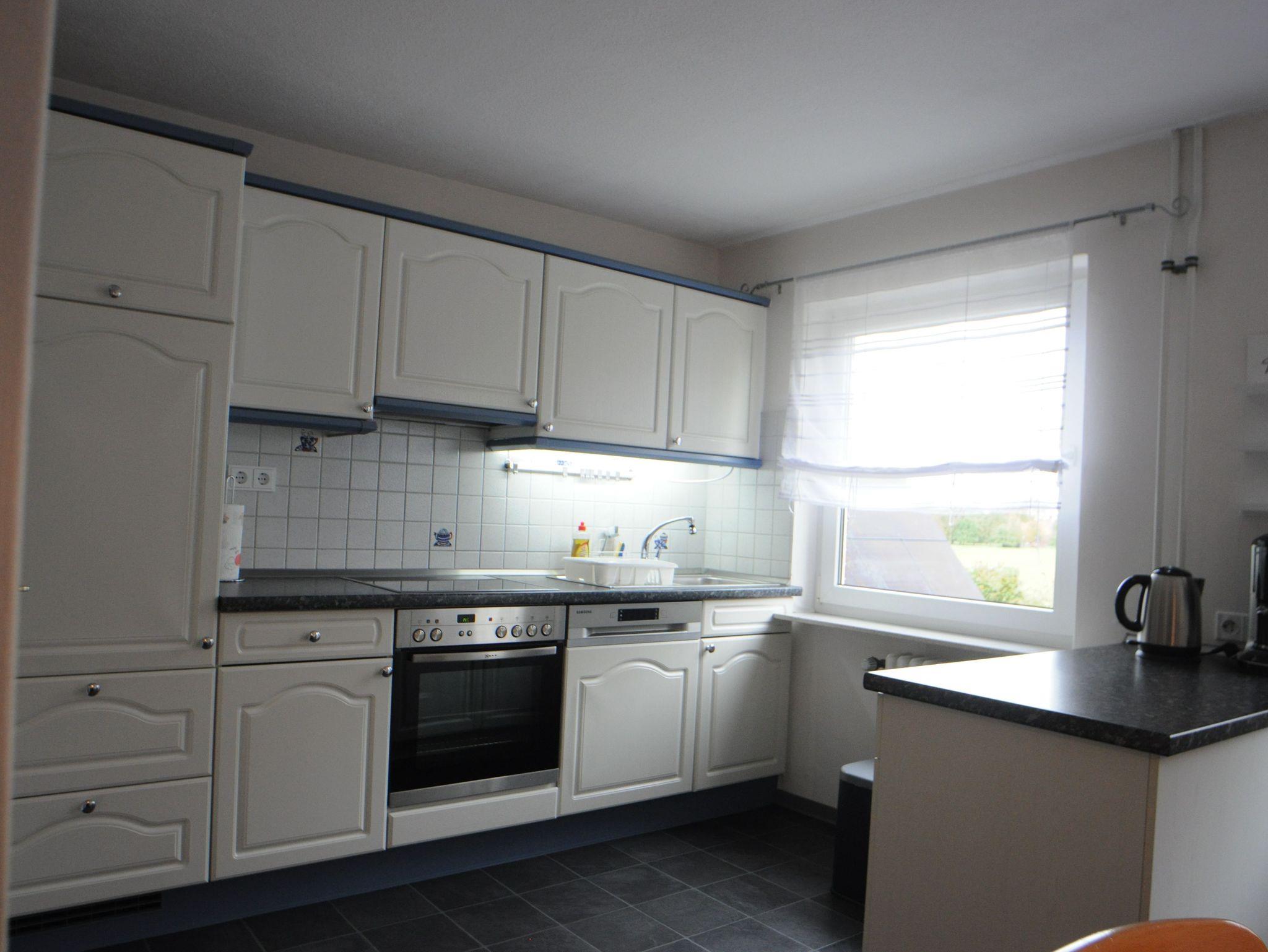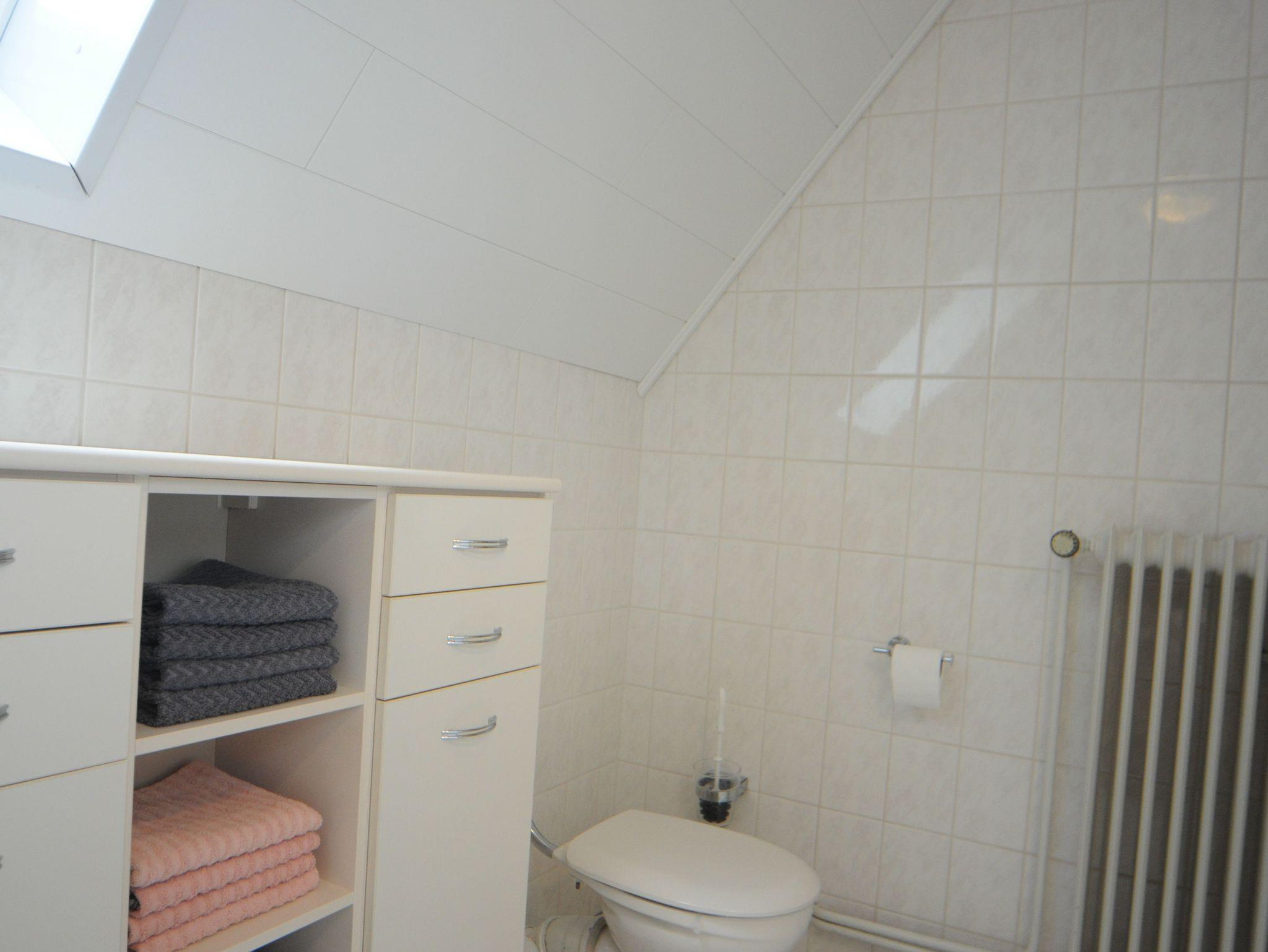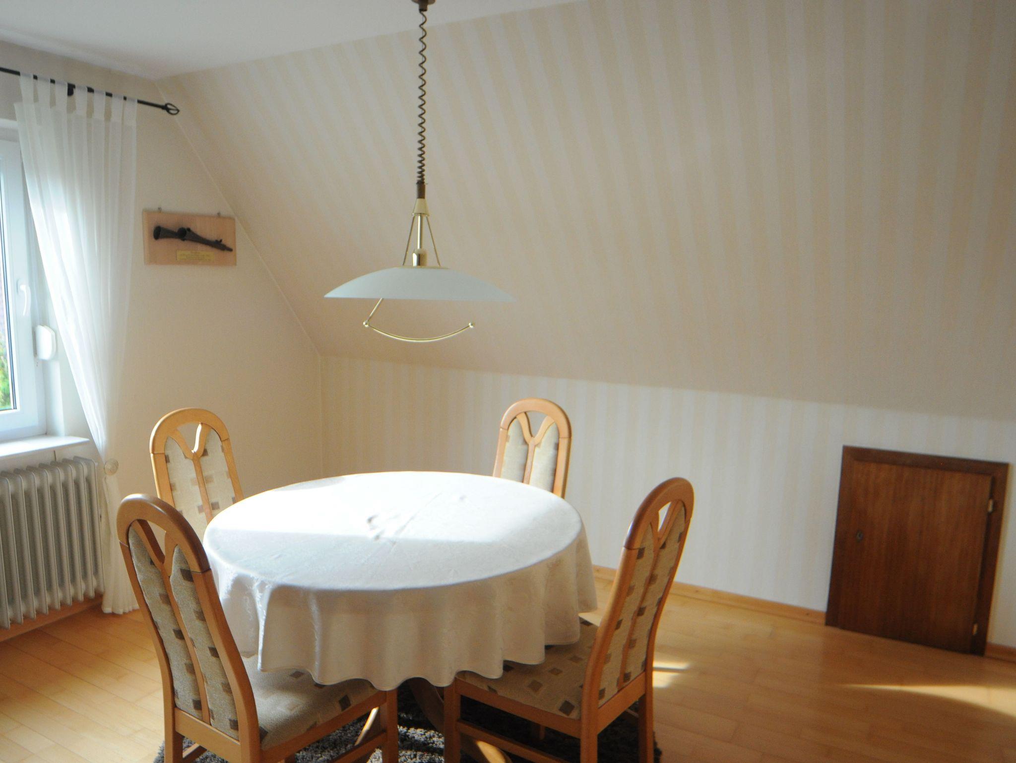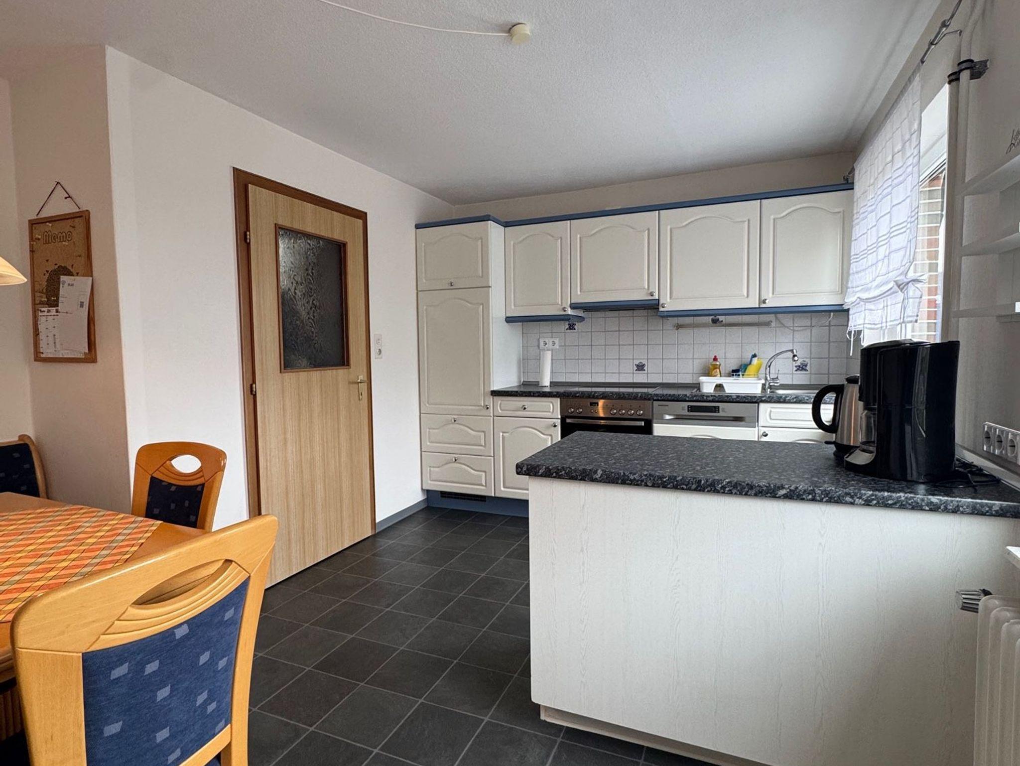 70 qm große Oberwohnung mit separater Küche mit Essbereich, großem Wohnzimmer mit Sitzgarnitur, TV und zusätzlicher Ess-Ecke, Badezimmer mit Badewanne und Trennwand zum Duschen sowie einem Doppelzimmer mit Boxspringbett.