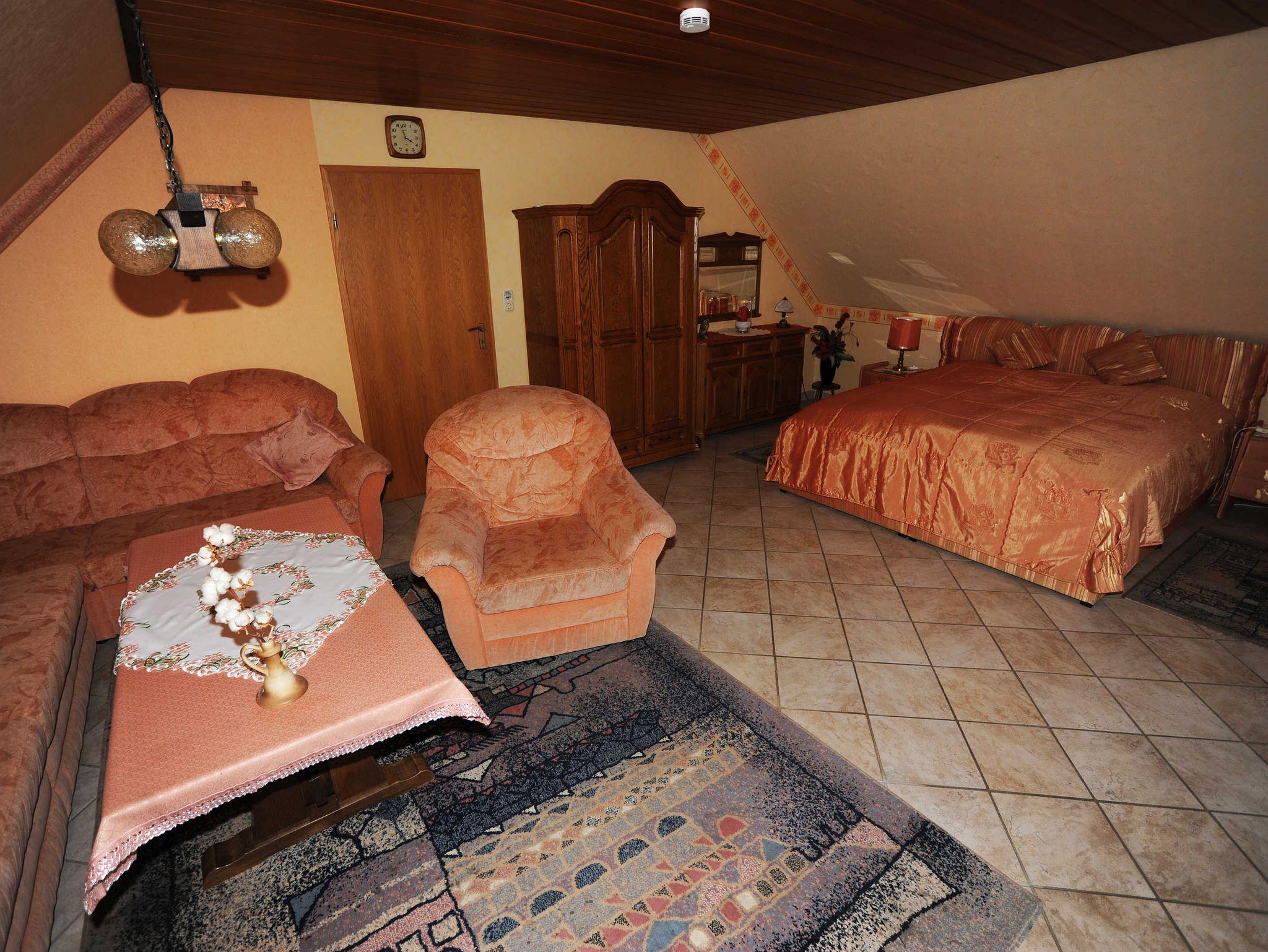 Die Oberwohnung besteht aus zwei Wohn-Schlafzimmern mit Doppelbett, Kabel-TV und DVD-Player (Kinderbett vorhanden), einer komplett eingerichteten Küche mit Mikrowelle und Gefrierbox, einem Badezimmer mit Badewanne, Dusche, zwei Waschbecken und WC.