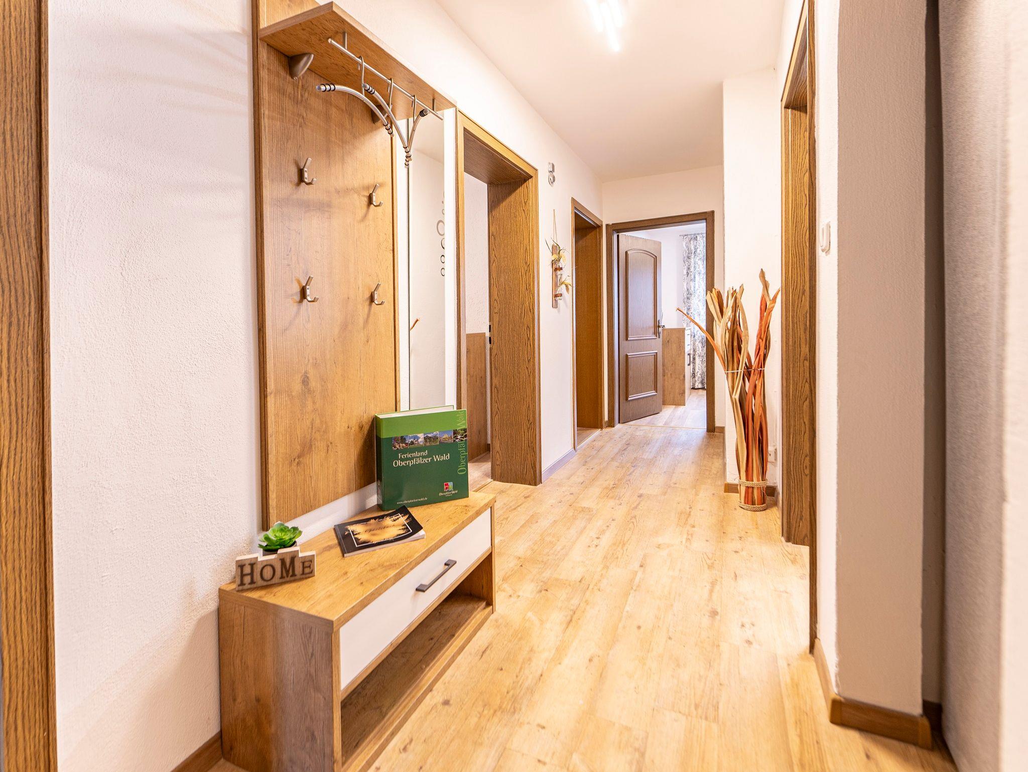 Eine Abstellnische mit Reinigungsutensilien sowie eine Garderobe mit Schuhablage im Flur runden das Angebot ab.