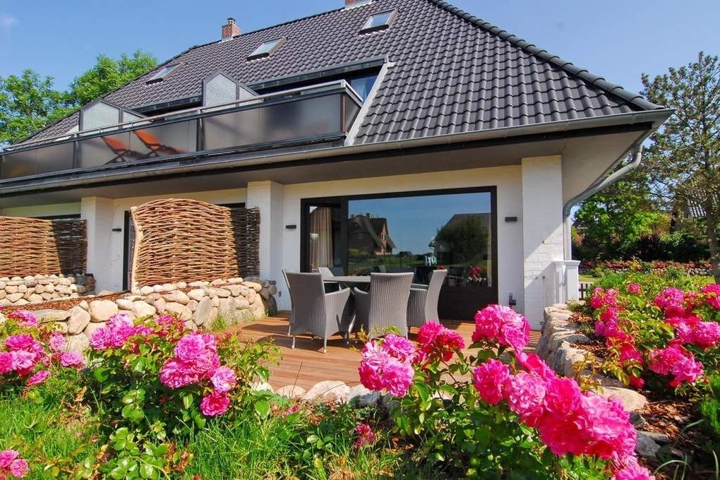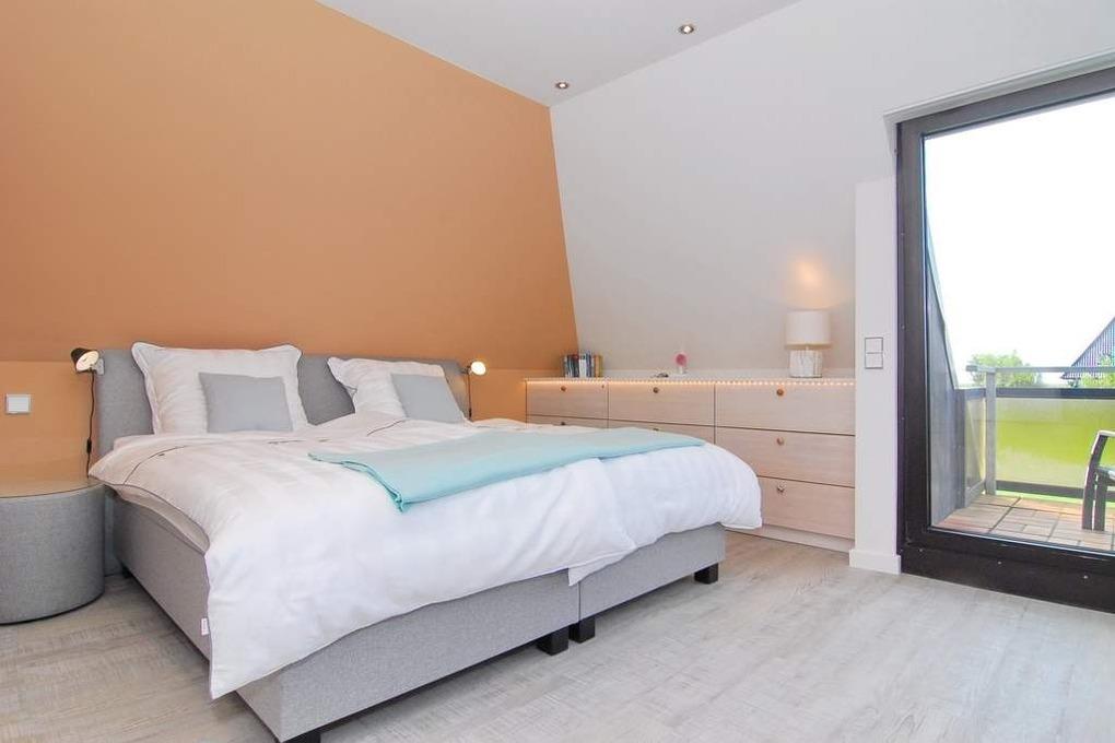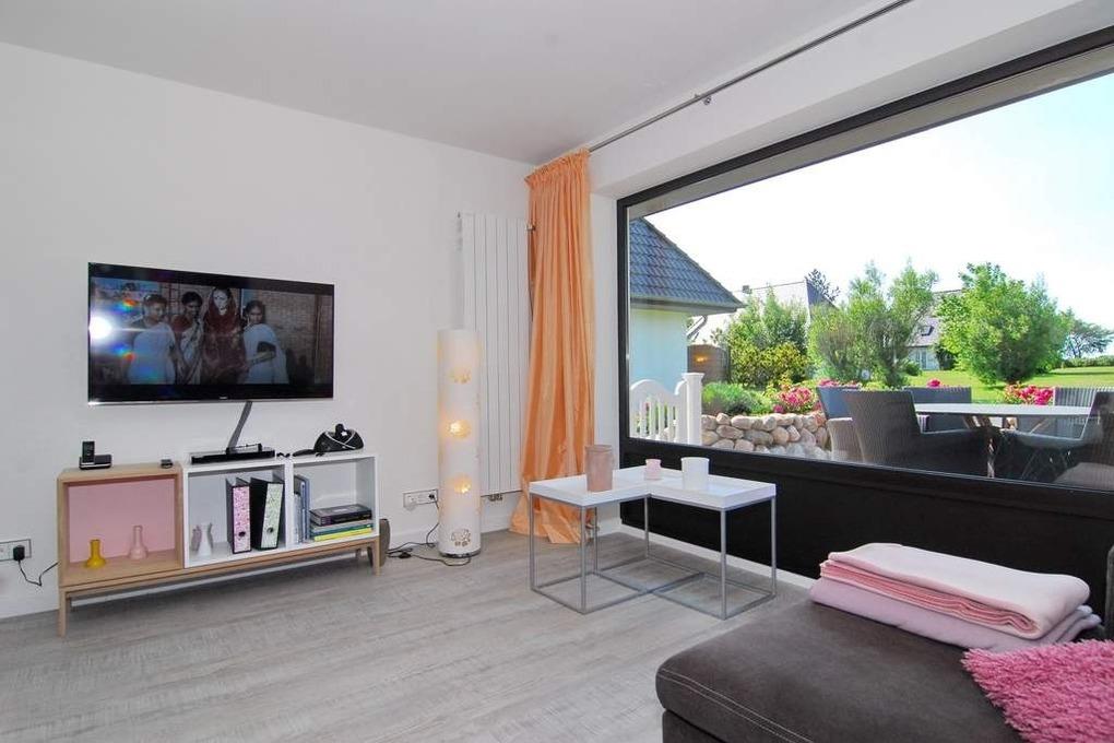 Exklusives Endhausteil, ca. 95 m², "Nichtraucher". EG: Wohnzimmer Sofaecke und Essplatz, Kamin-Ofen, Flat-TV, Stereoanlage, DVD, W-LAN vorhanden, Südterrasse mit Gartenmöbel und Markise, offene Küche mit Geschirrspüler, Backofen und Mikrowelle, Duschbad/WC mit Waschmaschine mit Trockner, Abstellraum. OG: kleines Schlafzimmer mit Doppelbett 160x200 und Einbauschrank und kleinem Flat-TV, großes Schlafzimmer mit Doppelbett (200x200), Flat-TV, Sofa, Sessel und Südbalkon, Duschbad/WC. DG mit Doppelbett (160x200 ) an der Schräge und Flat-TV. Tierhaltung ist nicht gestattet. PKW-Stellplatz am Haus. Bettwäsche und Handtücher sind zur Anreise aufgezogen.