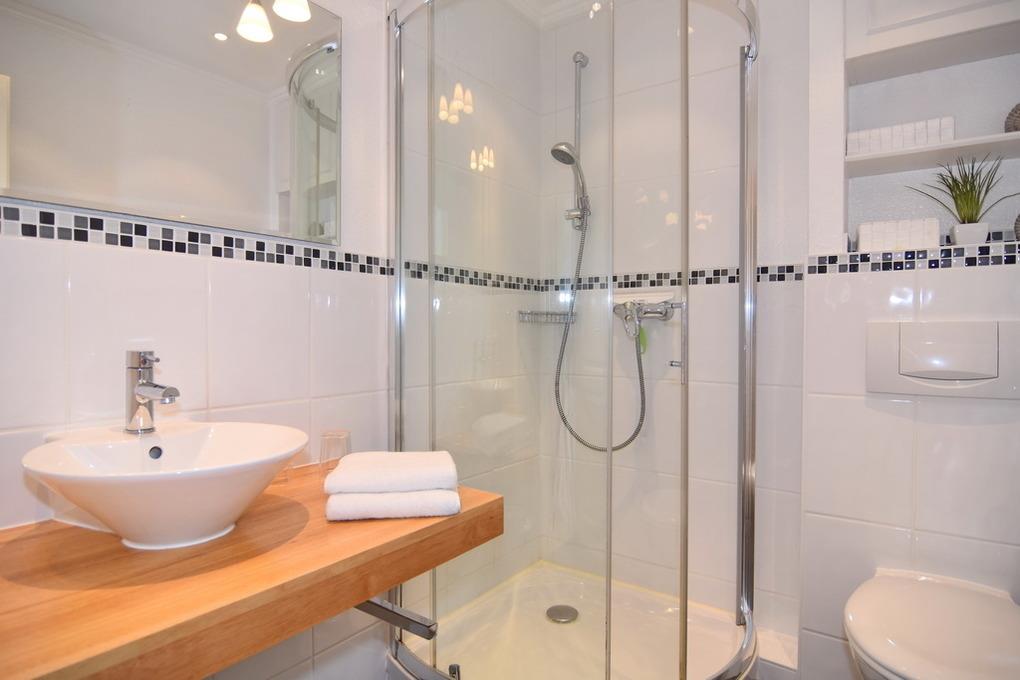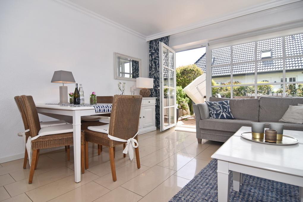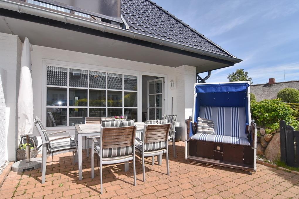 Exklusives Endhausteil, ca. 95 m², Nichtraucher. EG: Wohnzimmer mit zwei 2 Sitzer-Couchen und Essplatz, TV, Stereoanlage, DVD, Internet (ohne Gewähr), Südterrasse mit Strandkorb und Gartenmöbel, separate Küche mit Geschirrspüler, Backofen mit Dampfgarer, kleiner Gefrierschank, Duschbad/WC, Abstellraum mit Waschmaschine und Trockner, EG ist komplett gefliest. OG: kleines Schlafzimmer mit Einzelbett (100x200) und Sessel, großes Schlafzimmer mit Doppelbett (180x200), TV, Sessel und Südbalkon, Vollbad/WC, offenes DG mit Doppelbett (160x200) an der Schräge und Sessel. Tierhaltung ist nicht gestattet. PKW-Stellplatz am Haus. PKW-Stellplatz am Haus. Bettwäsche und Handtücher sind zur Anreise aufgezogen. Kinderreisebett und Hochstuhl befinden sich im Dachgeschoss.