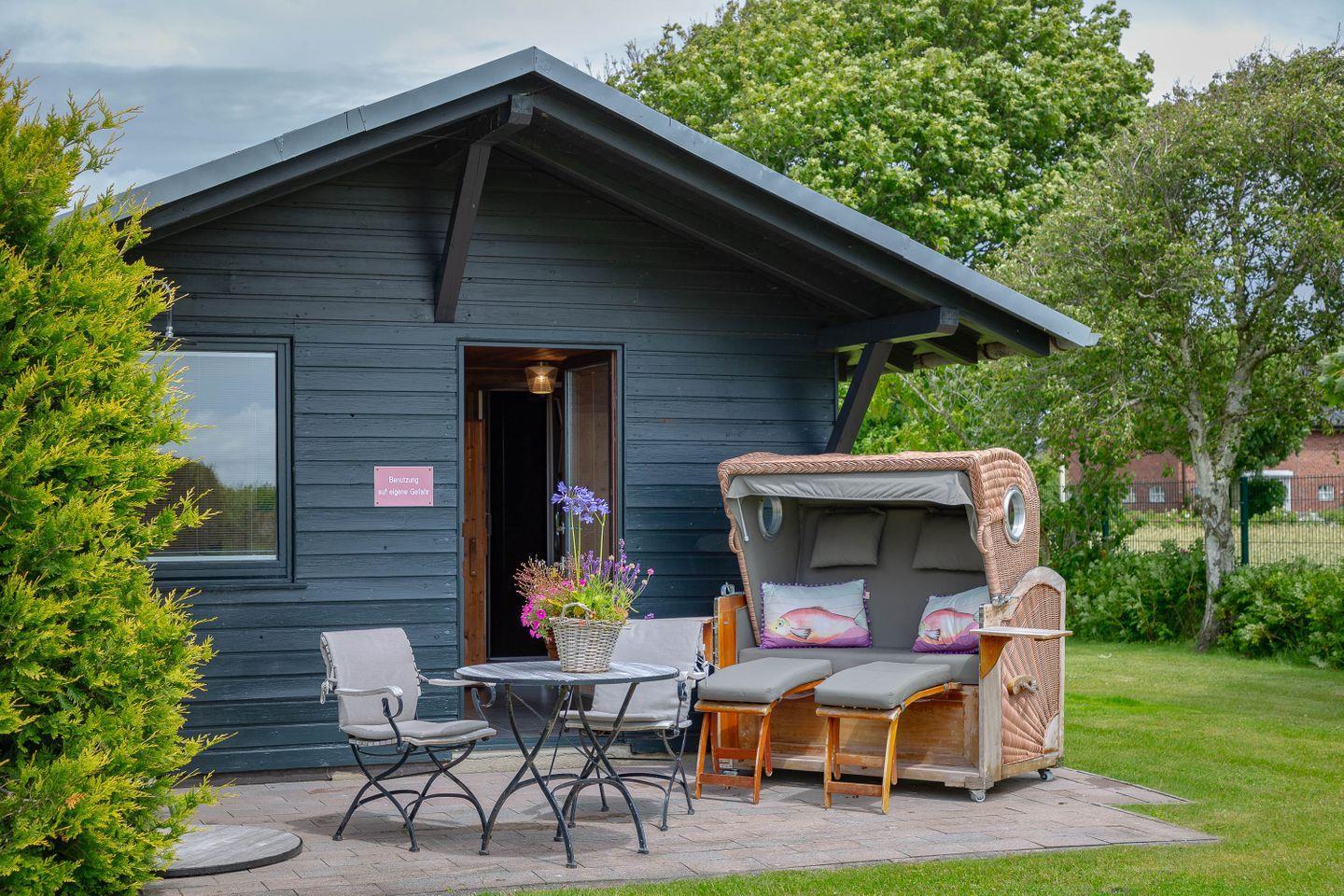 Im Garten werden Sie von einer geräumigen Sauna und einem Fitnessraum überrascht. Für weitere Entspannung am Abend sorgt unser Grill- und Relaxhaus, das sich ebenfalls auf dem geräumigen Gartengrundstück befindet und mit Korbmöbeln mit Yachtleder eingerichtet ist.