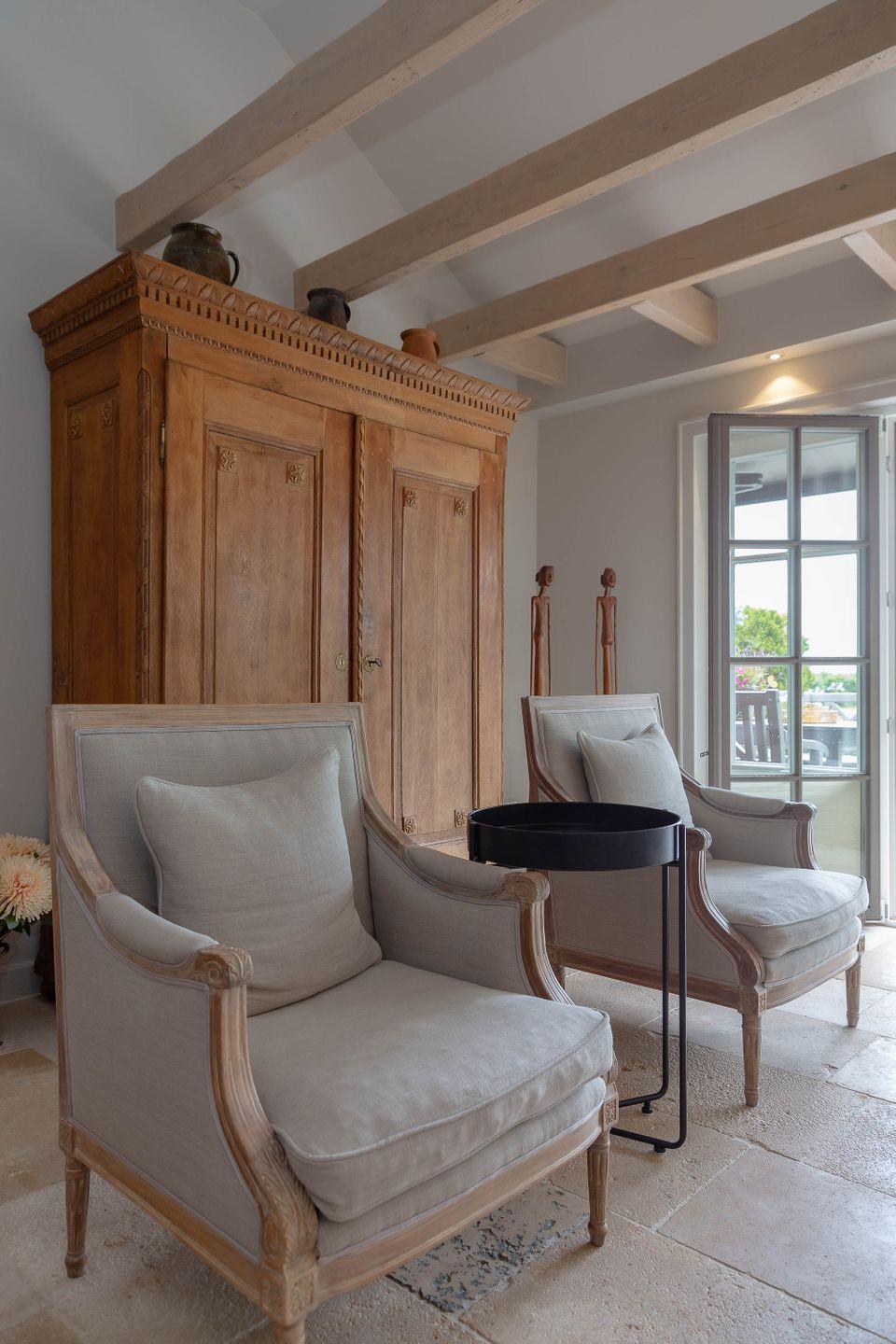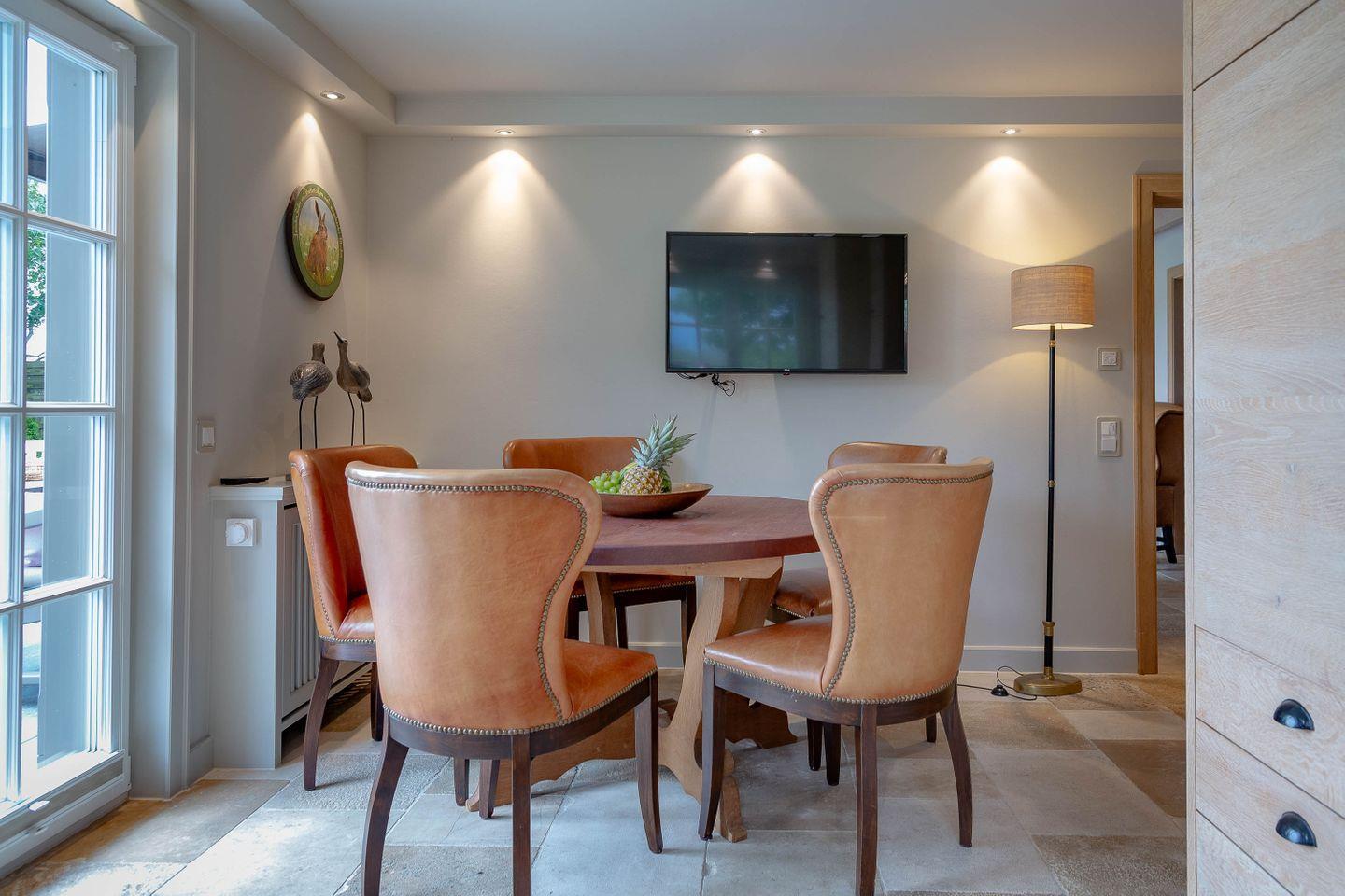 In unserem Ferienhaus mit sonnenverwöhnten Terrassen und direktem Gartenzugang befinden sich ein Schlafraum und zwei Wohnräume. Mit einem elektrischen Boxspringbett von Treca Interiors Paris bietet diese hochwertig ausgestattete Landhauswohnung komfortable Schlafmöglichkeiten für 2 Personen.
