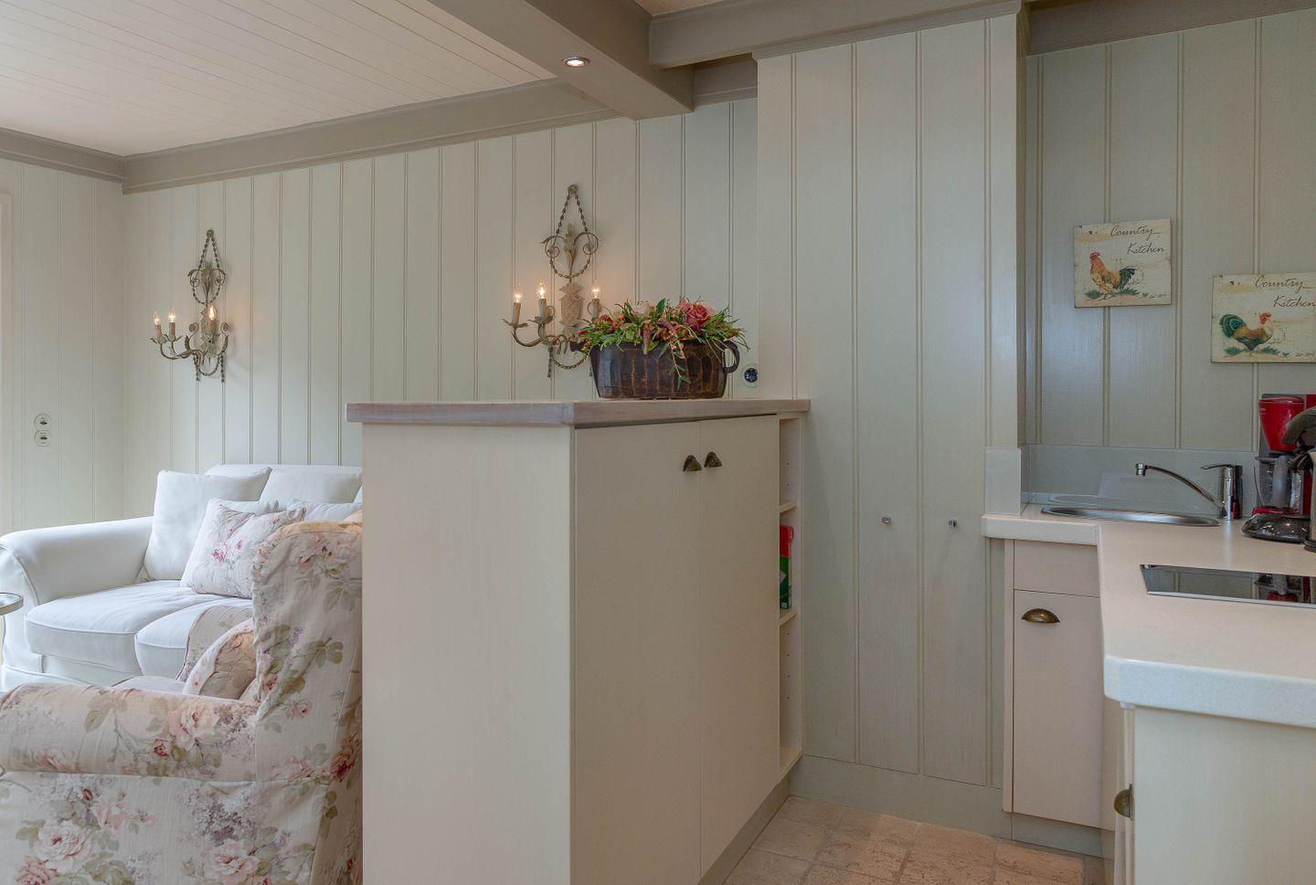 Genau dann bucht man diese Wohnung. Was sich hinter dieser Sprossenfenster-Haustür verbirgt, ahnt hier niemand: eine hinreißende kleine Landhauswohnung mit allem erdenklichen Luxus und vielen liebevoll inszenierten Details.