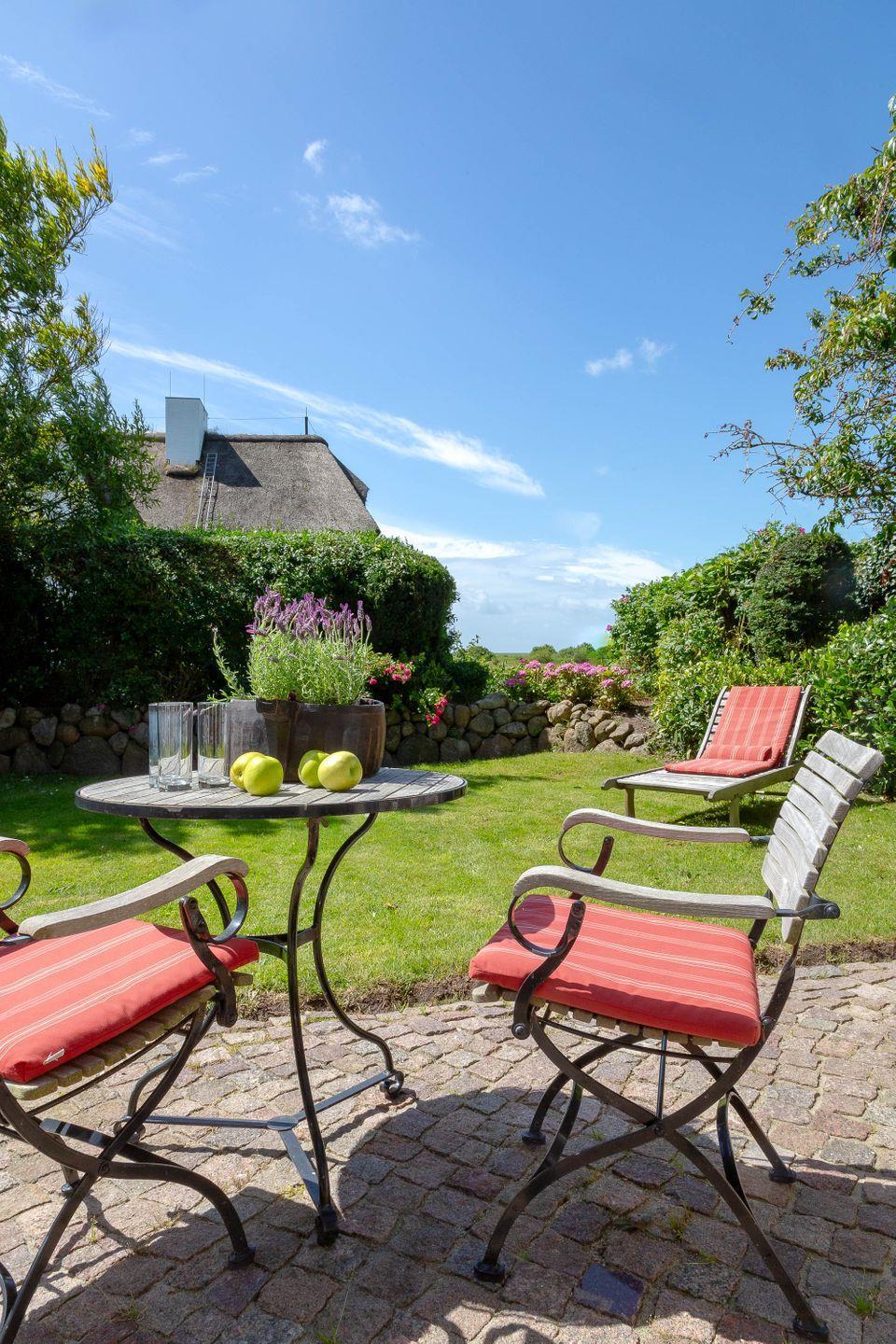 Diese hinreißende, kleine Wohnung bietet zwei Personen einen Platz, der mit allem nur erdenklichen Luxus und vielen liebevoll inszenierten Details wie den Düsseldorfer Schaltern ausgestattet ist. Duschen unterm „Sternenhimmel“, frühstücken auf der Terrasse Richtung Sonnenaufgang, oder aber einfach nur in den Garpa-Möbeln oder in Ihrem Strandkorb die Nachmittagssonne auf der Südterrasse genießen - hier ist auf nur einer Wohnebene einfach alles möglich. Friesische Holzvertäfelungen, mit englischem Leinen bezogene Polstermöbel, schöne Sylter Holzeinbauten, deckenhohe Spiegel, schlafen in französischen Polsterbetten, das Marmorbad, eine Landhausküchenzeile und der helle, beheizbare Marmorfußboden unterstreichen das luxuriöse Ambiente. Ein stilvolles "Versteck" zum Verlieben, mit direktem Blick auf den Deich, absolut luxuriös, total romantisch und echt idyllisch in Morsum am Deich.