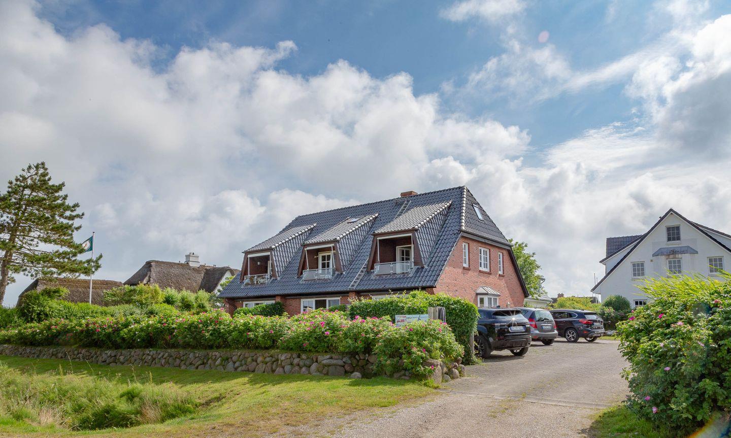 Der grandiose Standort in den Salzwiesen zwischen Morsum und Archsum allein macht diese Ferienwohnung schon zu einem einzigartigen Erlebnis. Hinzu kommt die Lage im Obergeschoss des Hauses mit einer Loggia, die einen atemberaubenden Blick auf das satte Grün der Natur und natürlich einzigartige Sonnenuntergänge bietet.