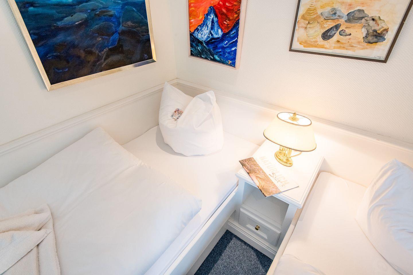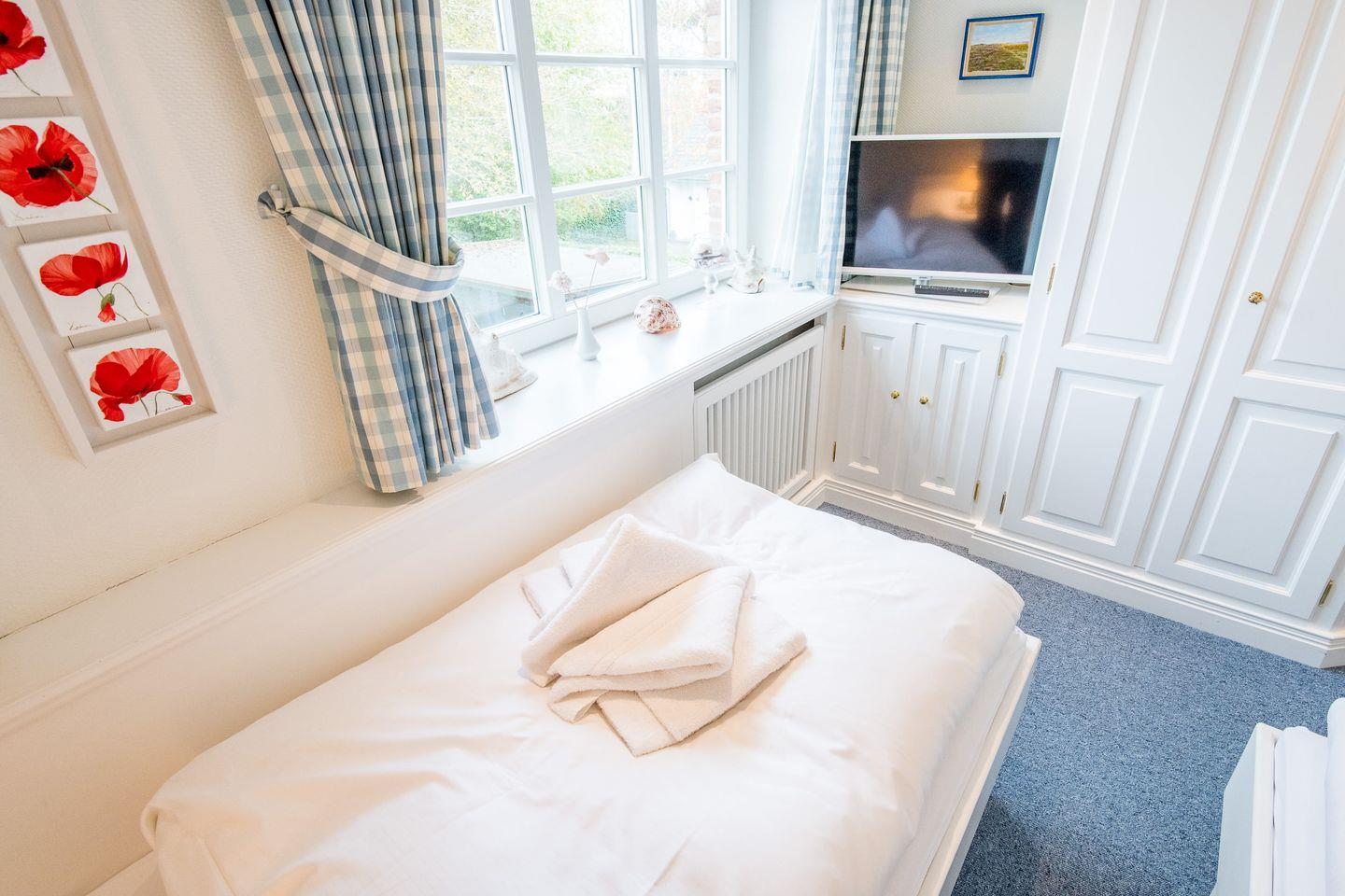 Die drei komfortabel eingerichteten Schlafzimmer dieses Mittelreihenhauses bieten den perfekten Rückzugsort für erholsame Nächte und entspannte Urlaubstage. Das erste Schlafzimmer ist mit einem großzügigen Doppelbett (2x 90x200 cm) ausgestattet und bietet durch praktische Einbauschränke viel Stauraum für ein aufgeräumtes Ambiente. Auch im zweiten Schlafzimmer lädt ein Doppelbett (2x 90x200 cm) zum Abschalten und Entspannen ein. Im gemütlichen Dachgeschosses befindet sich das dritte Schlafzimmer, ebenfalls mit einem komfortablen Doppelbett (2x 80x200 cm) versehen.
