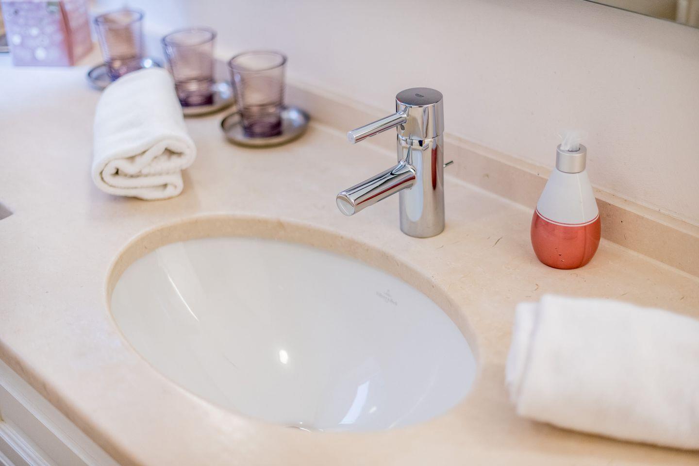 Das moderne Badezimmer verfügt über eine großzügige Dusche, einen Handtuchwärmer und bietet somit alles, was Sie für einen entspannten Start in den Tag benötigen. Ein separates Gäste-WC ergänzt die Ausstattung und sorgt für zusätzlichen Komfort.