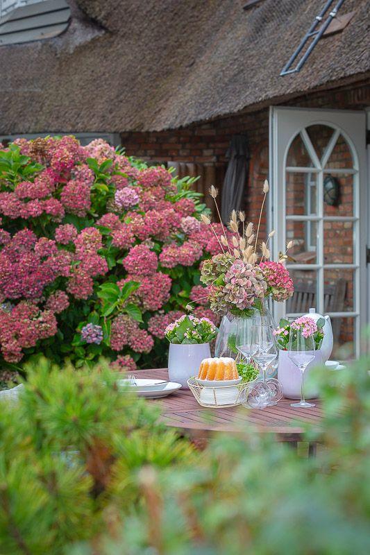 Von hier aus gelangen Sie auf Ihre – von großen Hortensien gesäumte – Terrasse, die Ihnen durch ihre Süd / Ost-Ausrichtung viele Sonnenstunden und den Blick auf das Wattenmeer beschert. Verweilen Sie hier in aller Ruhe und lassen Sie die Seele baumeln.