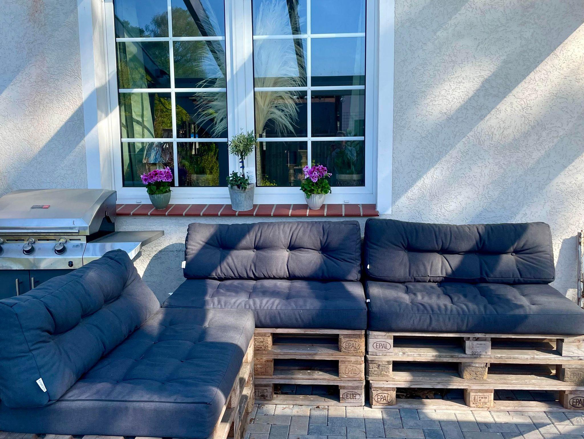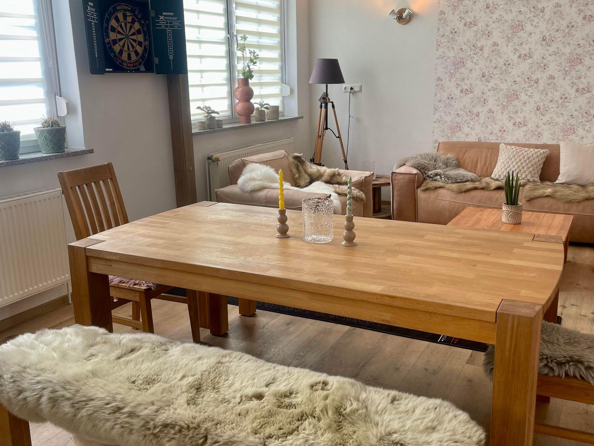 Unser Ferienhaus ist ebenerdig und verfügt über zwei feste Schlafzimmer, einer Schlafcouch und einem großen Wohn- und Essbereich.