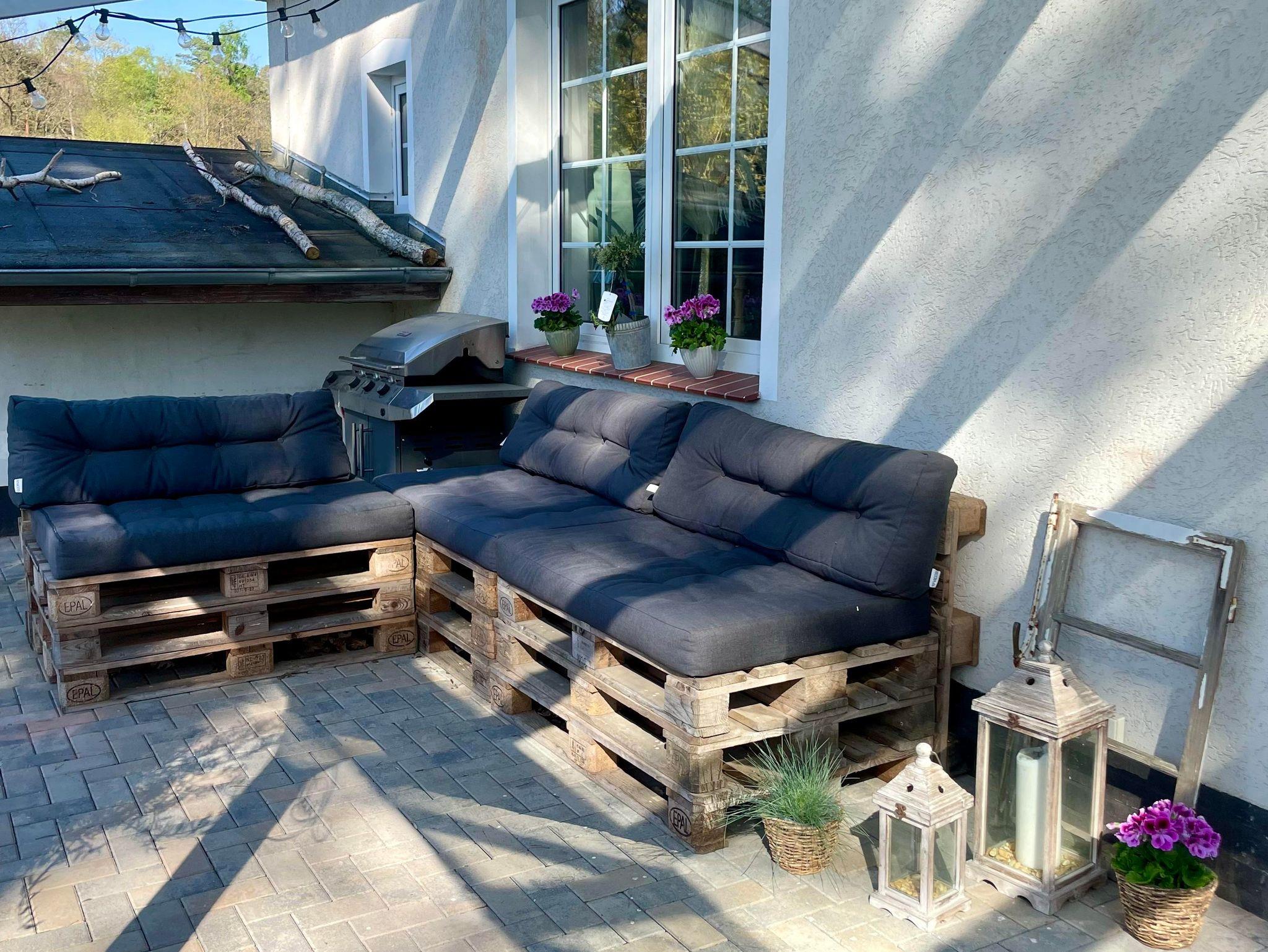 Der Aussenbereich lädt mit einer überdachten Terasse zum Relaxen ein.