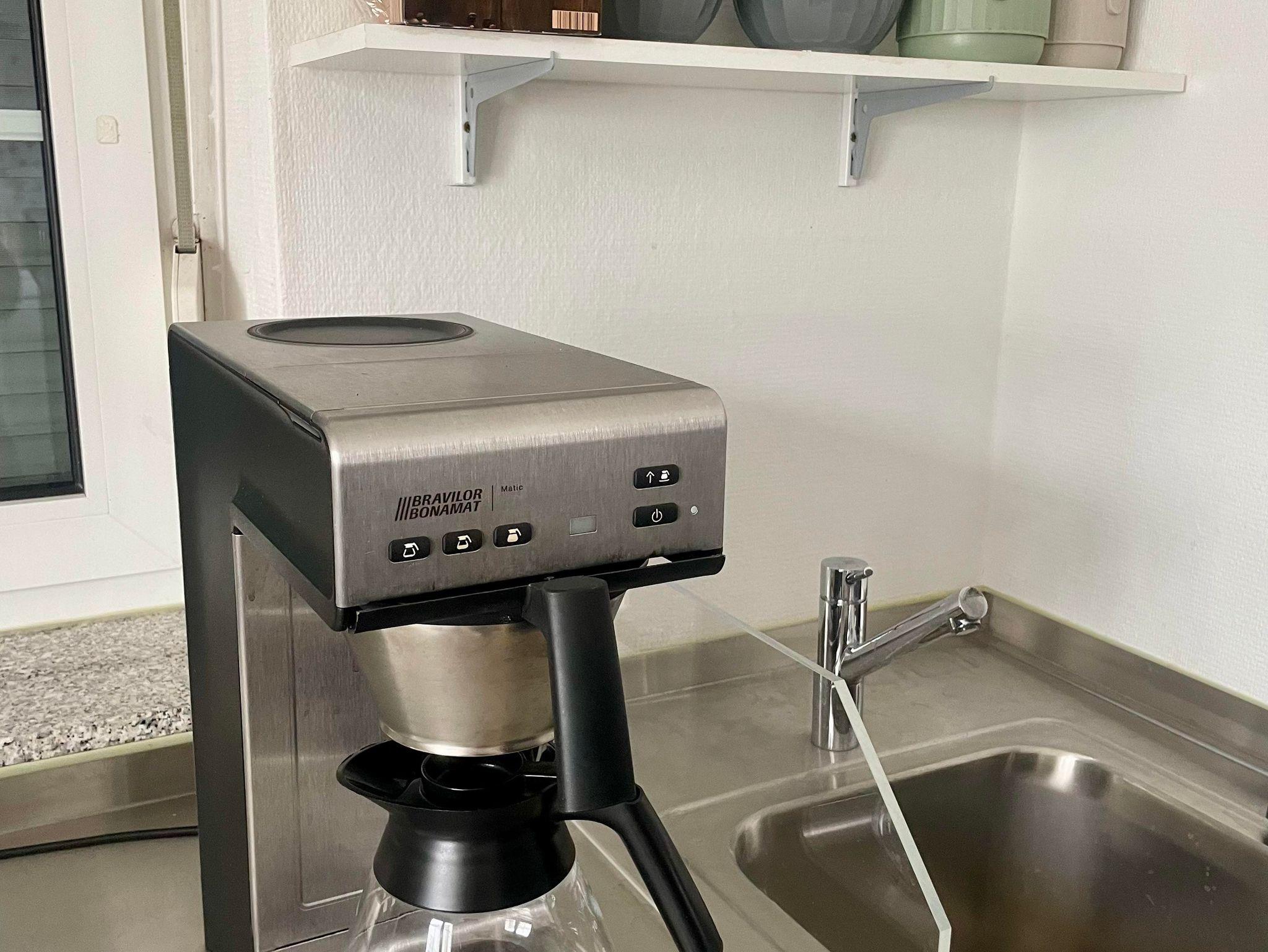 Die großzügige Küche ist mit einem Kaffeevollautomaten, Thermomix, einer Mikrowelle und einem Toaster ausgestattet.