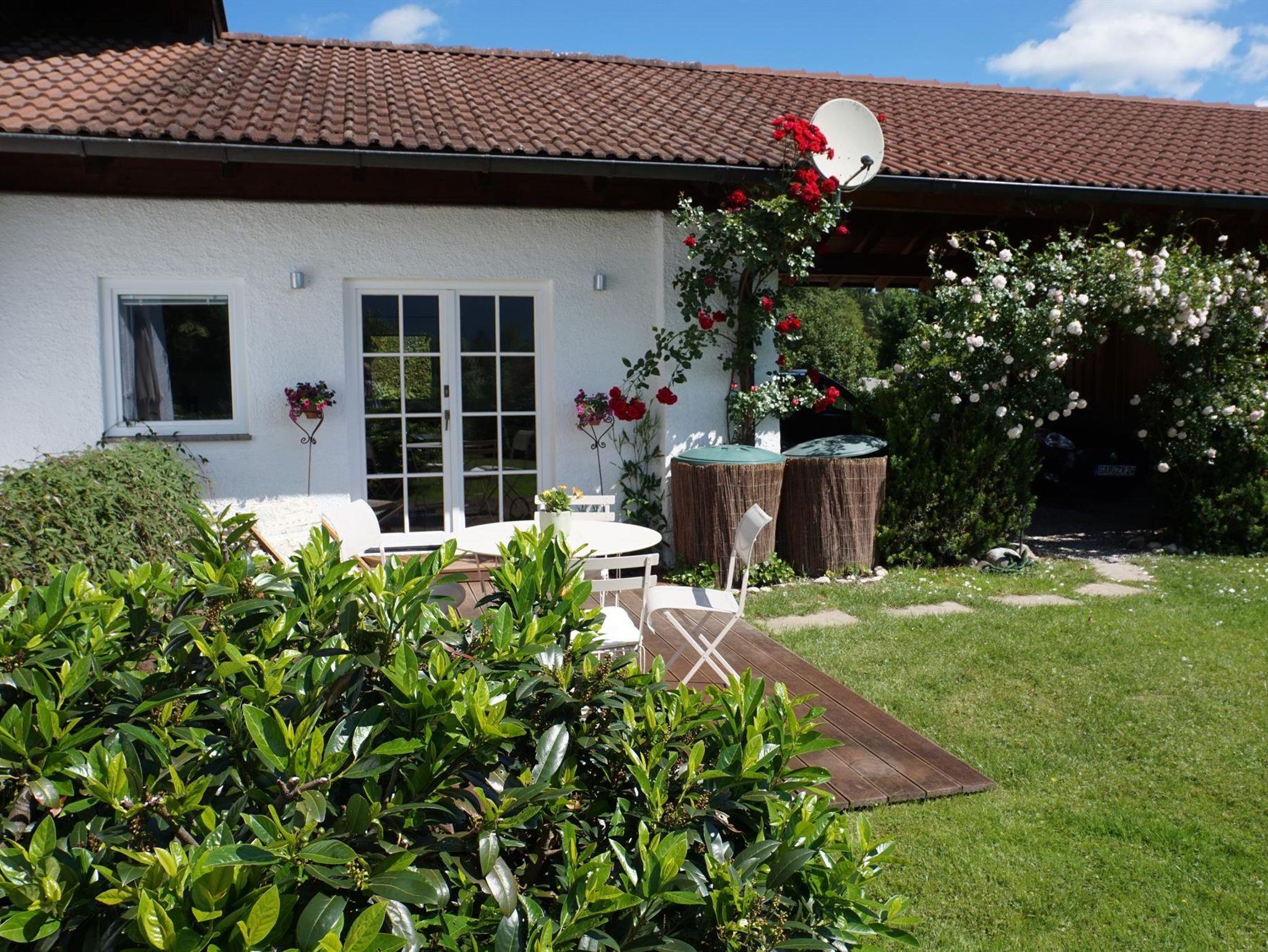 Gemütliches Studio (35m²) mit Terrasse und Garten am Rande des Murnauer Mooses mit einem traumhaften und unverbautem Bergblick. Das Wohnzimmer besteht aus einer Sitzgelegenheit mit Couchgarnitur, Couchtisch und SAT-TV sowie einem Essplatz mit Tisch und 4 Stühlen. Die Galerie mit den zwei Betten (80 cm und 90 cm) erreicht man über eine Leiter. Wer das nicht mag, kann unten das Sofa in ein Bett (140 cm x 200 cm) verwandeln. Die Küchenzeile ist mit Microwelle, Spülmaschine, Ceranfeld mit 2 Platten, Kühlschrank, Spüle, Dolce Gusto Espressomaschine, Wasserkocher, Thermoskanne, Teekanne und den üblichem Zubehör ausgestattet. Das Studio liegt am Ortsrand von Murnau (Hechendorf) und man hat einen traumhaften Blick ins Moos und zum Heimgarten, ideal für alle, die gerne wandern, spazieren gehen, Fahrrad fahren, Berg steigen oder einfach ausspannen möchten. Hunde auf Anfrage.