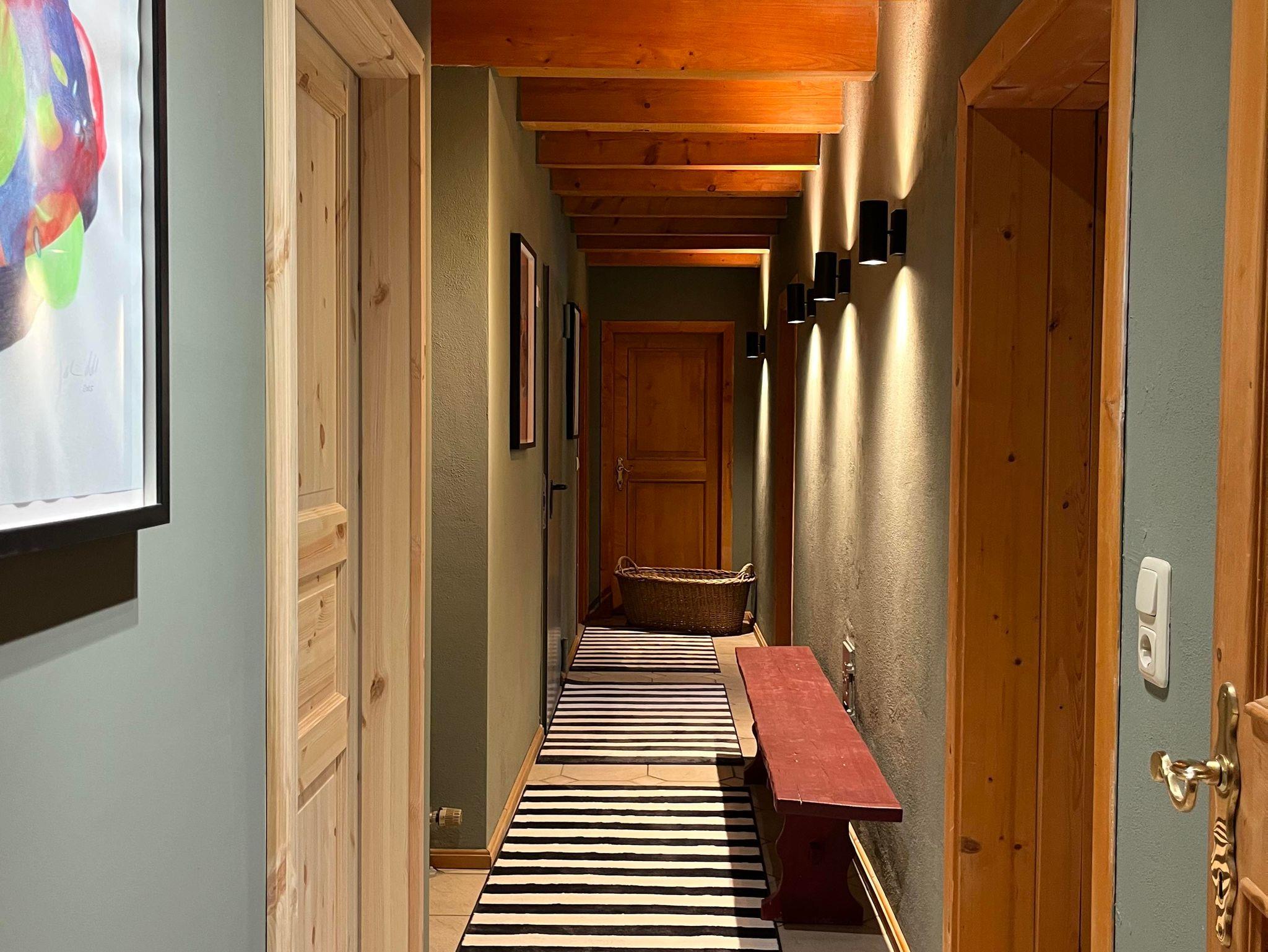 Jeder Raum im Chalet ist sorgfältig kuratiert, um eine warme und anspruchsvolle Atmosphäre zu schaffen. Traditionell werden Chalets aus Holz gebaut – darum steht Holz im Mittelpunkt der Einrichtung. Natürliche Farben, weiche Textilien und ausgewählte Möbel werden mit sorgfältig ausgewählten Kunstwerken und Farbakzenten kombiniert. Dies verleiht dem Interieur eine moderne Note und bleibt gleichzeitig den Wurzeln des Chalets treu. Blau- und Grüntöne dominieren das Design und lassen die wechselnden Farben des Estergebirges direkt durch die Fenster hindurchscheinen.