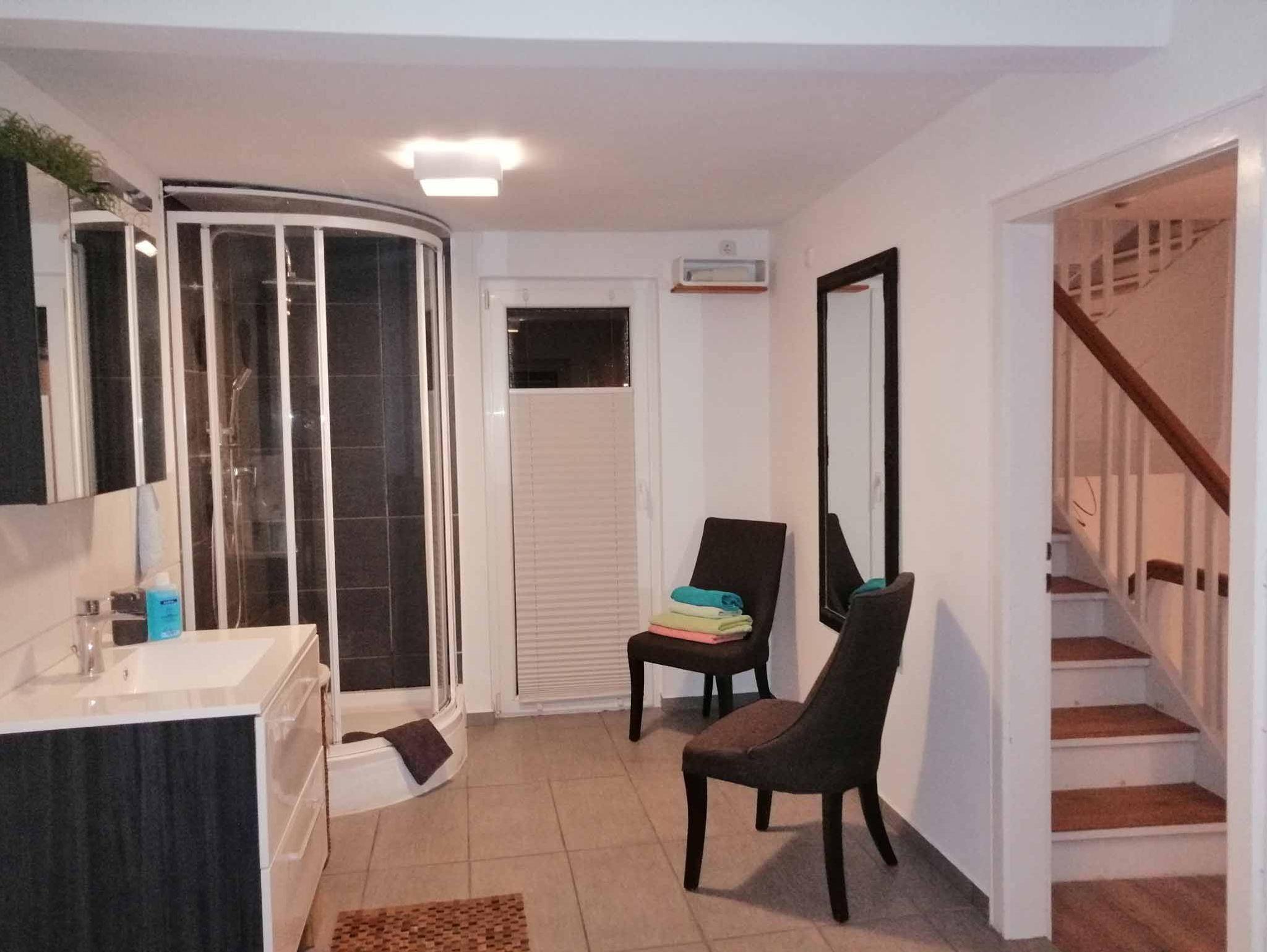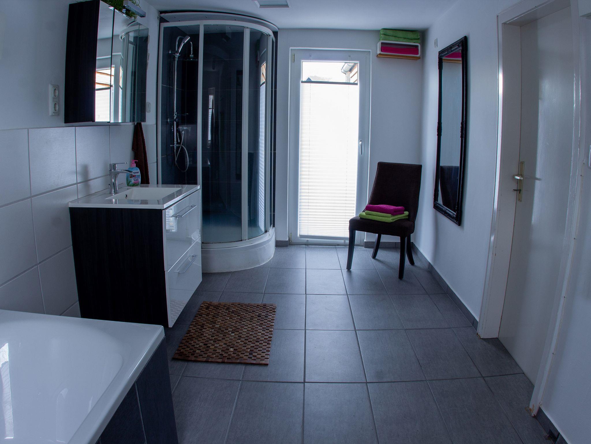 Unsere Gäste bewohnen das ganze Haus allein. Im Erdgeschoss befindet sich der Eingangsbereich und die Garderobe, die Schuhablage und die Putzkammer. Offenes Wohnen ist das Thema in 1. Stock, außerdem gibt es dort ein sehr großes Badezimmer mit Tür zur Dachterrasse. Selbstverständlich geht es vom Esszimmer über die Leseecke auch zur Dachterrasse. Über den Flur geht es dann in den 2. Stock zum großen Schlafzimmer mit Doppelbett, und wenn gewünscht können bis zu maximal 2 Erwachsene oder aber maximal 3 Kinder dort mit übernachten. Im ersten Stock können bis zu 2 Personen übernachten (Schlafbett 1,60m). Das Zimmer kann mit einem Raumteiler auf Wunsch abgetrennt werden. Das 3. Schlafzimmer wurde komplett neu renoviert und bietet somit noch mehr Platz für unsere Gäste. Der neue Raum befindet sich im Erdgeschoß und verfügt über ein Doppelbett und ein hochwertiges Schlafsofa. Es ist wohnlich gestaltet, sodass man sich tagsüber mal zurück ziehen kann. Unser 4 Sterne Ferienhaus ist jetzt auch hervorragend geeignet für befreundete Ehepaare oder Freunde. Jetzt können wir auch bis zu 6 Einzelbetten anbieten. Die hochwertige Küche mit einer Kochinsel und einen Backofen, Herd, Spülmaschine, Kühlschrank, Gefrierschrank, Toaster, Kaffeemaschine, Wasserkocher und exklusiven Geschirr ausgestattet. Das Bad ist besonders groß mit Badewanne, Dusche und Waschtisch. Das Wohnzimmer ist mit bequemer Sitzlandschaft und großen TV und Beamer und Leinwand mit Soundanlage ausgestattetes gibt einen extra Schreibtisch zum Arbeiten am Computer. In der schönen Leseecke können Sie entspannen und verweilen. Vom Esszimmer mit großem Tisch geht es auch direkt zur geräumigen Dachterrasse mit Blick auf das Selbitztal. Tisch, Stühle, Sonnenschirm und Liegen laden Sie ein die Sonne zu genießen.