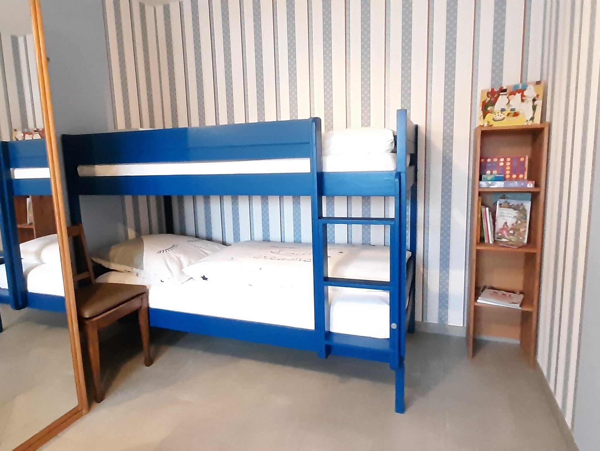Aufteilung: Windfang, Wohnzimmer mit Schlafcouch, integrierte voll ausgestatteter Küche mit Eßbereich, Bad mit WC und Dusche (Durchgangsraum), Schlafzimmer mit Doppelbett und Etagenbett. Es können 1-6 Personen übernachten.
