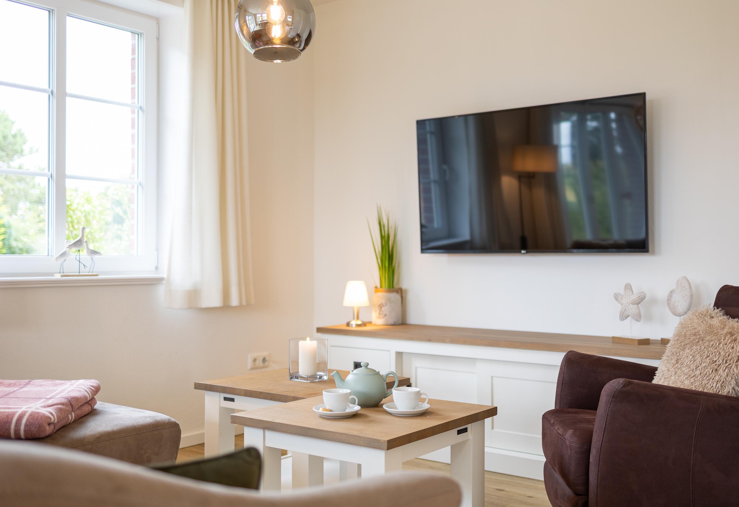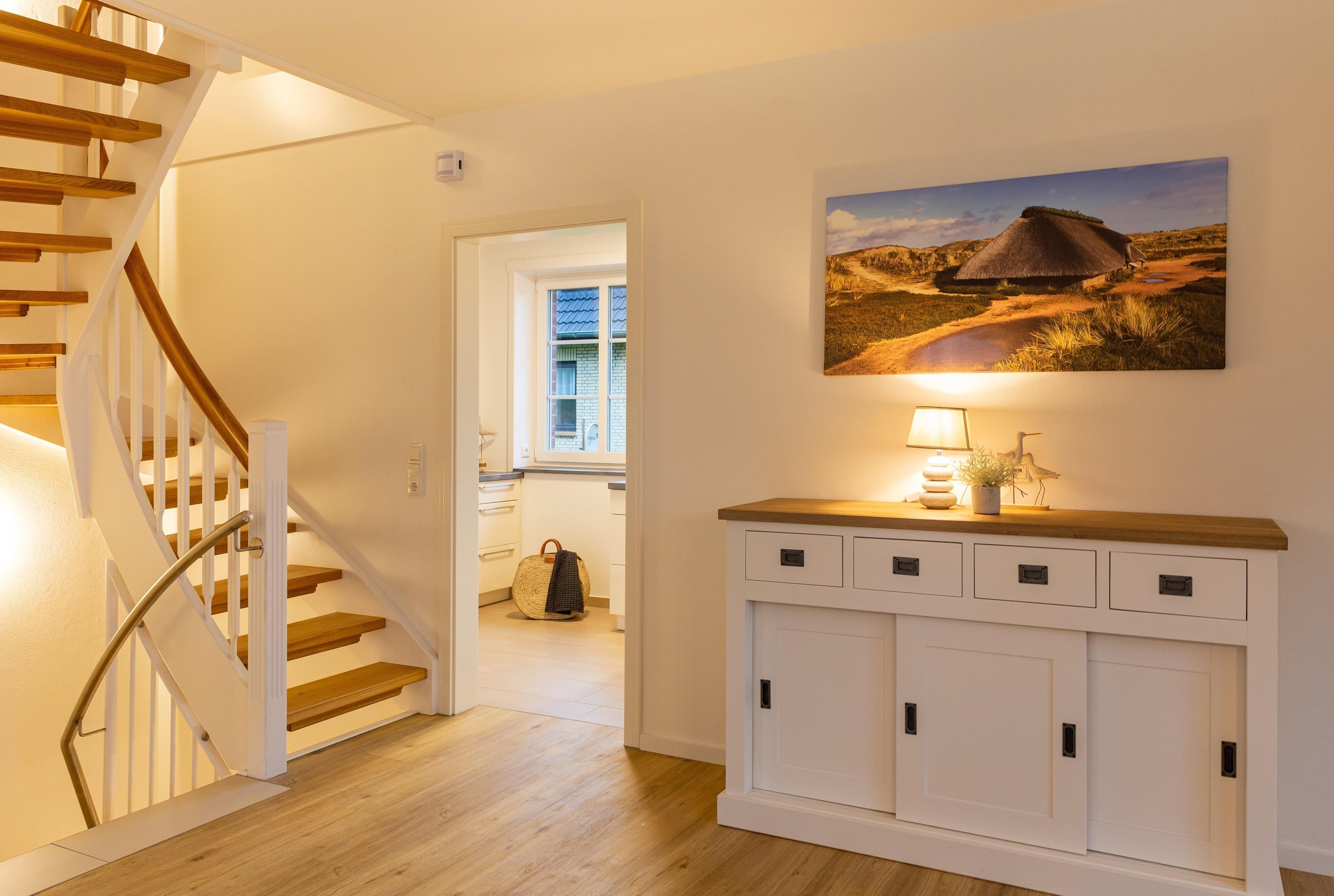 Die Doppelhaushälfte "Jöri Hüs 1" bietet Ihnen zu aller erst eines - viel Platz! 120 Quadratmeter Wohnfläche erstrecken sich über vier Ebenen und bieten moderenes Wohnen für bis zu sechs Personen unter Reet.