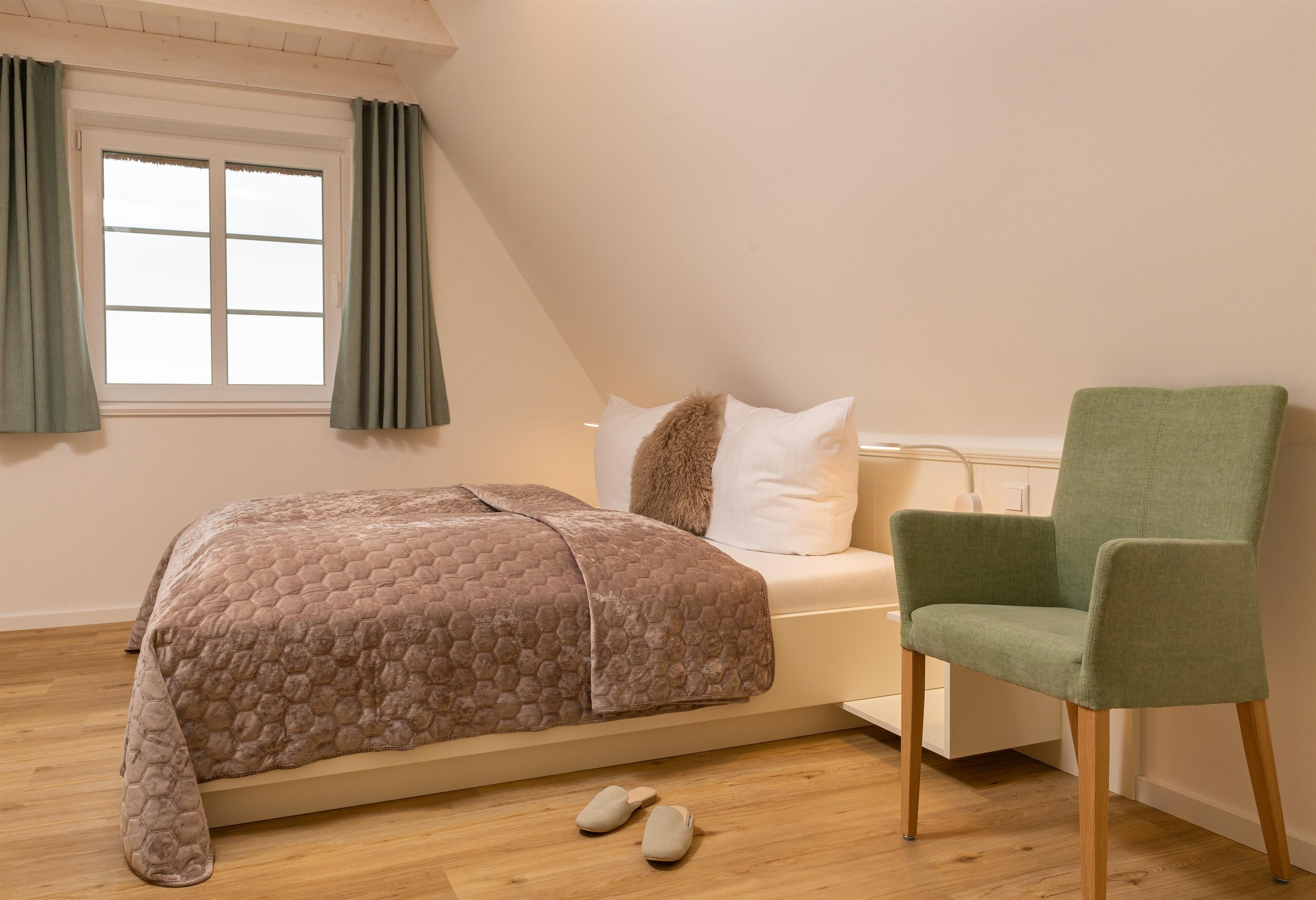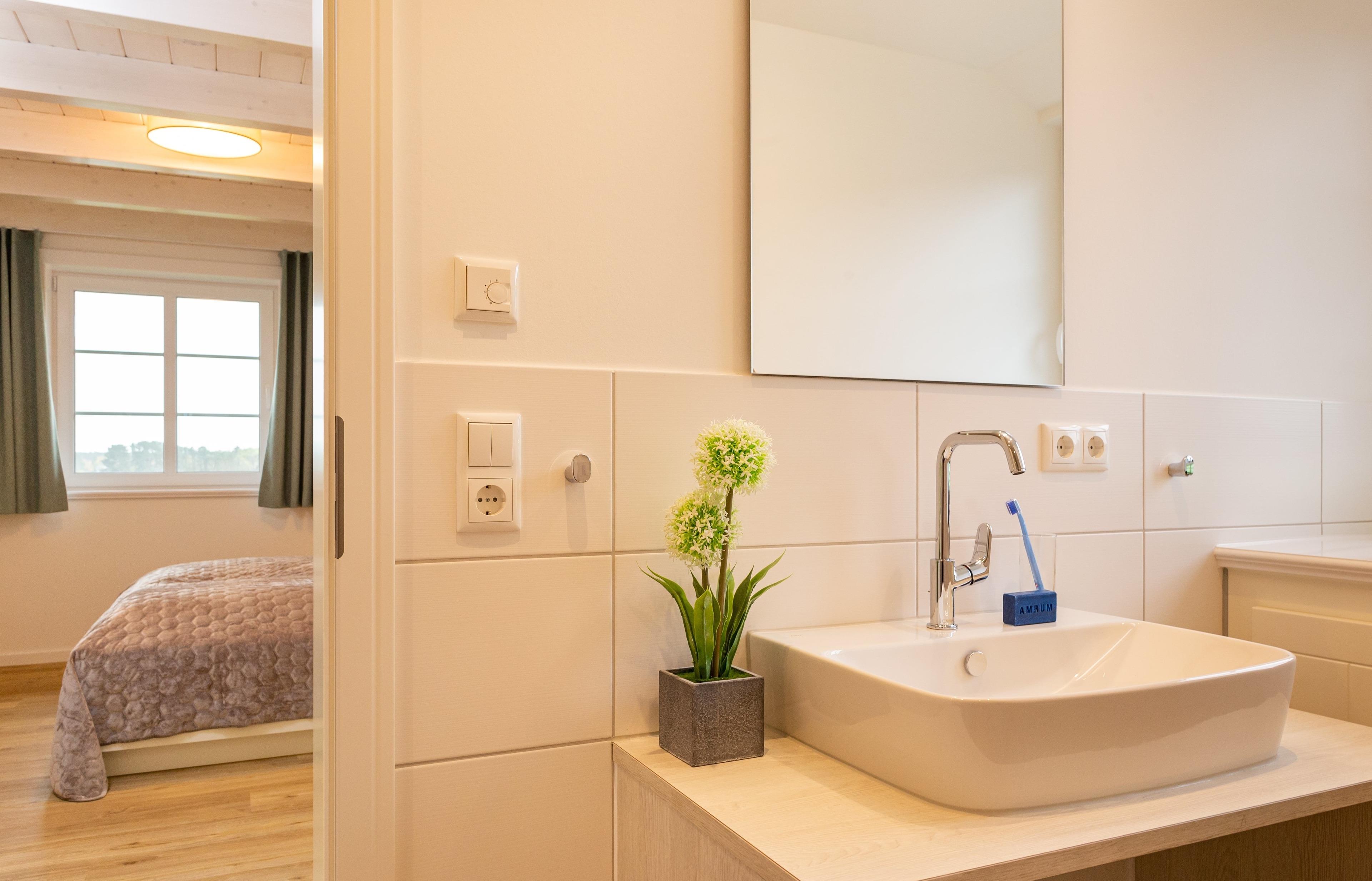 Die Zimmer sind wie folgt aufgeteilt: Eine umfassend ausgestattete Küche, vereint mit einem offen gestaltetem Wohn/Essbereich und Gäste-WC befindet sich im Erdgeschoss. Ein Schlafzimmer mit Doppelbett und eigenem Bad, sowie ein Einzelschlafzimmer und zweites Bad finden Sie im 1. Stock. Im Dachgeschoss befindet sich ein Einzelbett zum Treppenhaus offen. Ein zusätzliches Schlafzimmer mit zwei Einzelbetten und eigenem Bad befindet sich im Keller.
