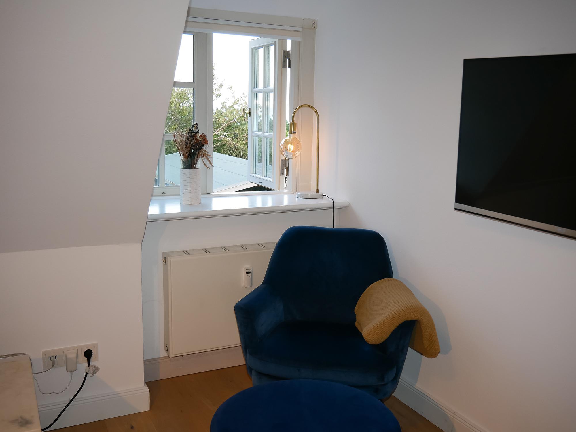 Der atemberaubende Meerblick aus der Wohnung lädt dazu ein, sich zu entspannen und die Schönheit der Nordsee zu bewundern. In den kühleren Monaten sorgt ein gemütlicher Kamin für wohlige Wärme. Genießen Sie sonnige Tage auf der Terrasse im Garten der Anlage, ein perfekter Ort für entspannte Stunden im Freien.