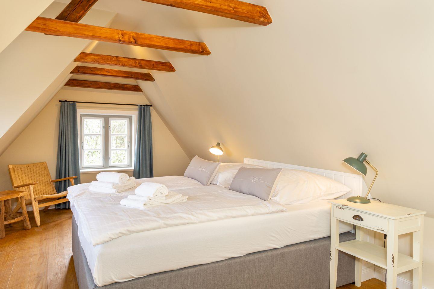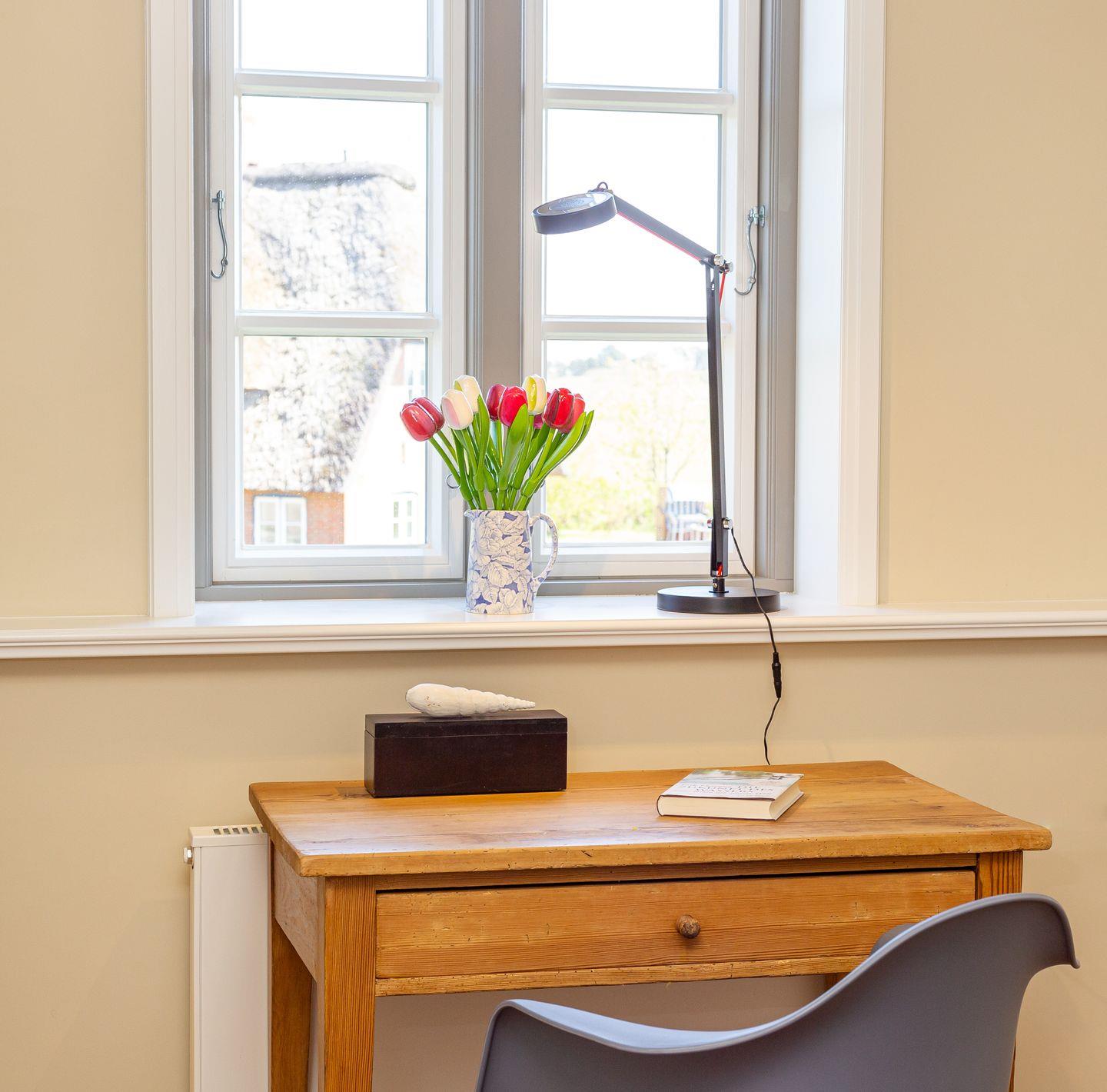 Dieses wunderschöne Reetdachhaus im Herzen Amrums bietet allen Komfort, um den Urlaub unvergesslich zu machen. Am Nebeler Strandweg liegt das Haus optimal, um von dort die Insel zu erobern. Das Haus bietet Platz für bis zu 8 Personen, die in 5 Schlafzimmern aufgeteilt werden können. Es ist perfekt für einen gemeinsamen Familienurlaub. Die Einrichtung besticht durch eine gelungene Kombination aus traditionellen Elementen und modernen, stilvollen Möbeln. Ihnen steht das gesamte Haus mit viel Platz zur Verfügung. Im Haus befinden sich 3 Doppelschlafzimmer und 2 Einzelbettschlafzimmer.