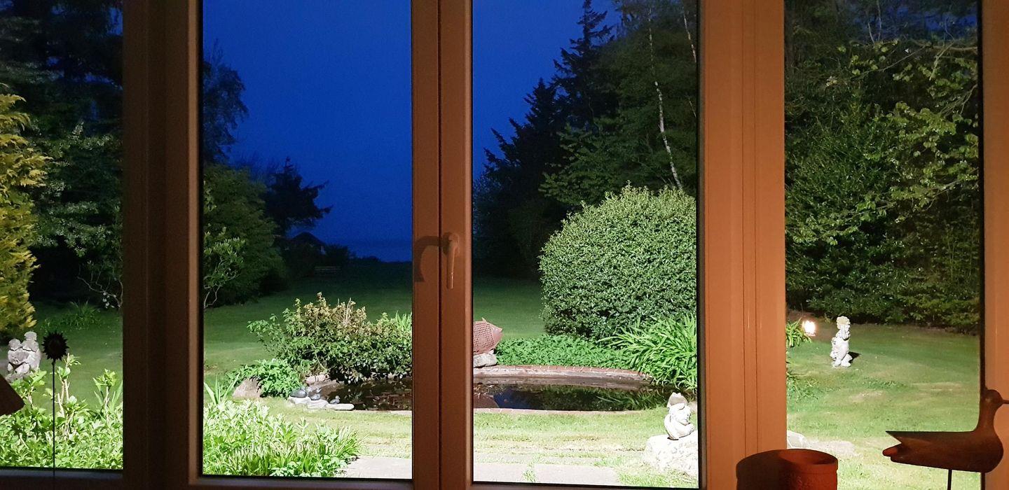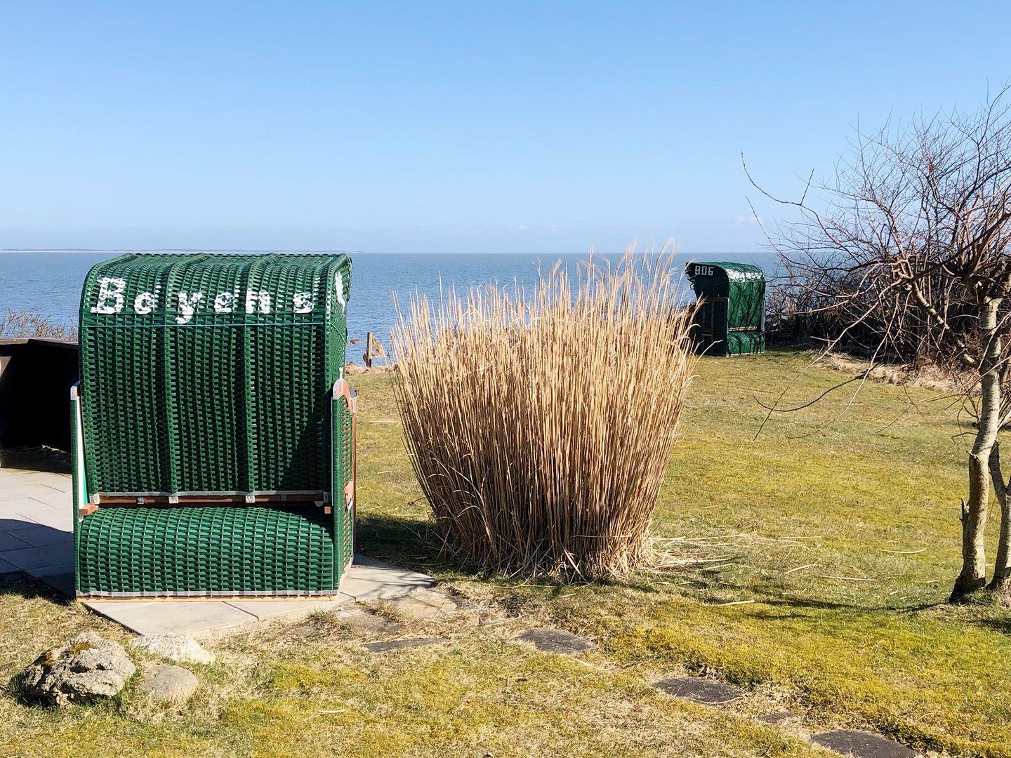 Bei klarem Wetter sehen Sie die Insel Föhr gegenüber und alle Halligen mit Ihren Leuchtfeuern am Abend. Der Ort Nebel mit seinem Kirchturm auf der linken Seite ist gut zu erkennen. Der Blick geht dann weiter über das Wattenmeer bis zur Nordspitze von Amrum.