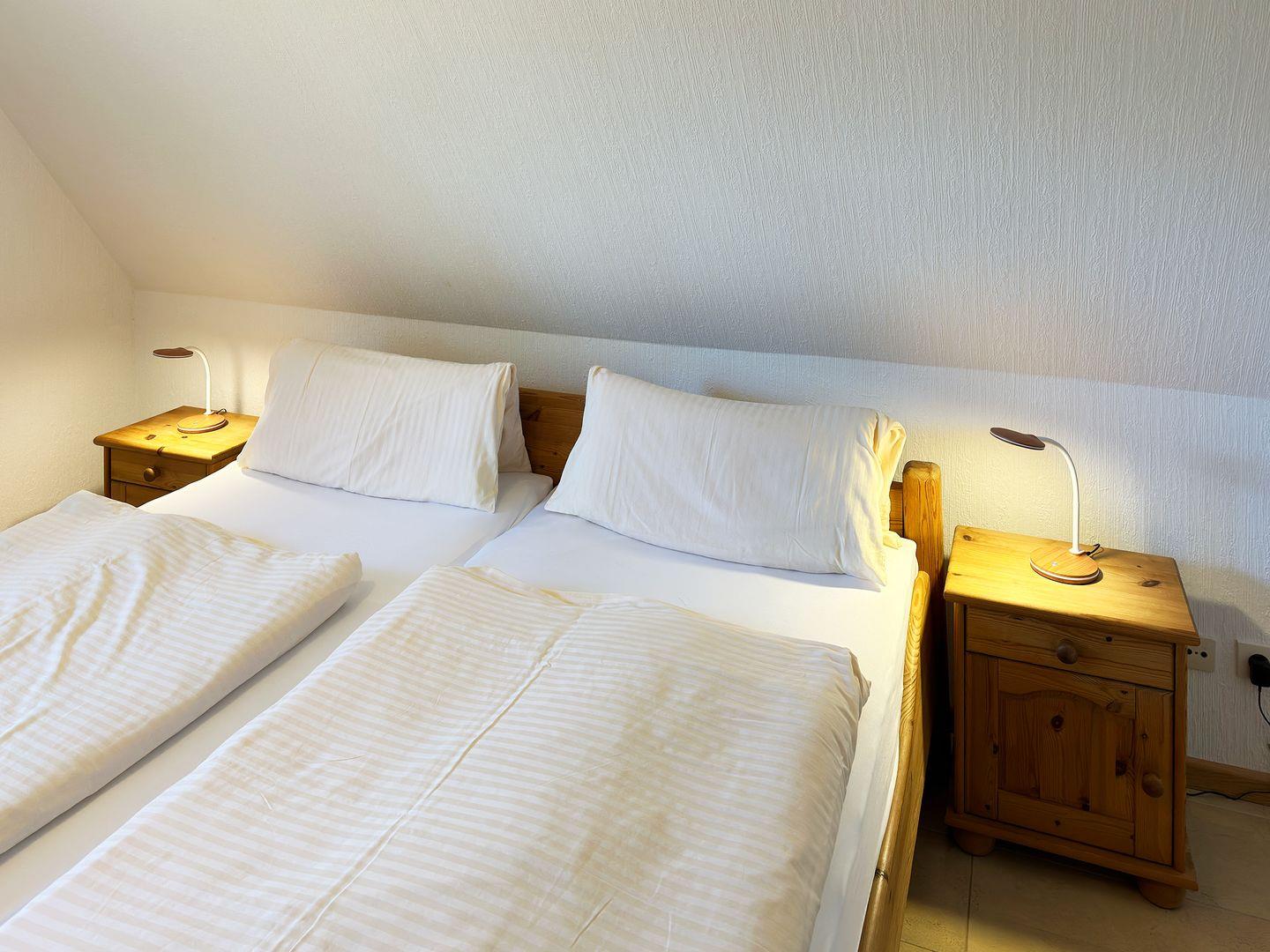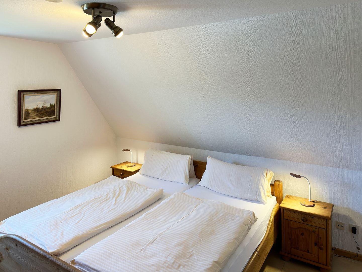 Die Ferienwohnung *Üüs Aran 1* im 1. Obergeschoss des Hauses *Üüs Aran* in Süddorf auf Amrum ist eine 2-Zimmer-Ferienwohnung (ca. 30 qm Grundfläche) mit Schlafmöglichkeiten für 1 bis 2 Personen.