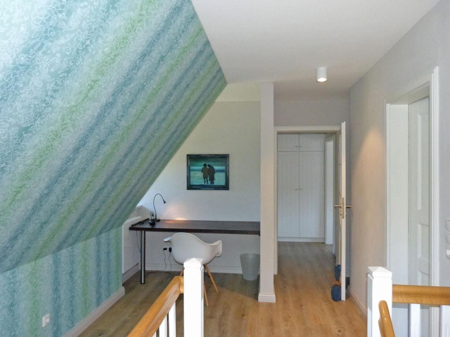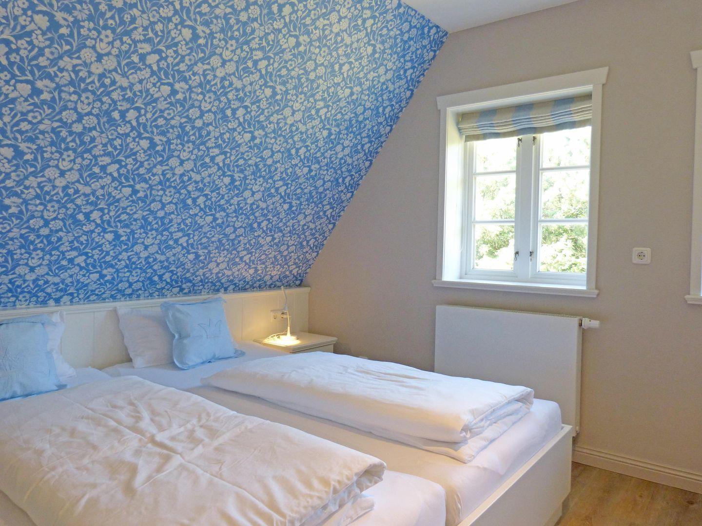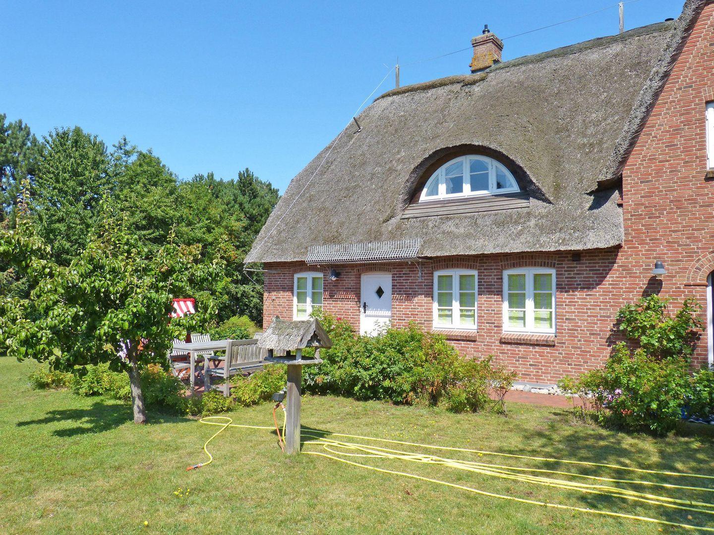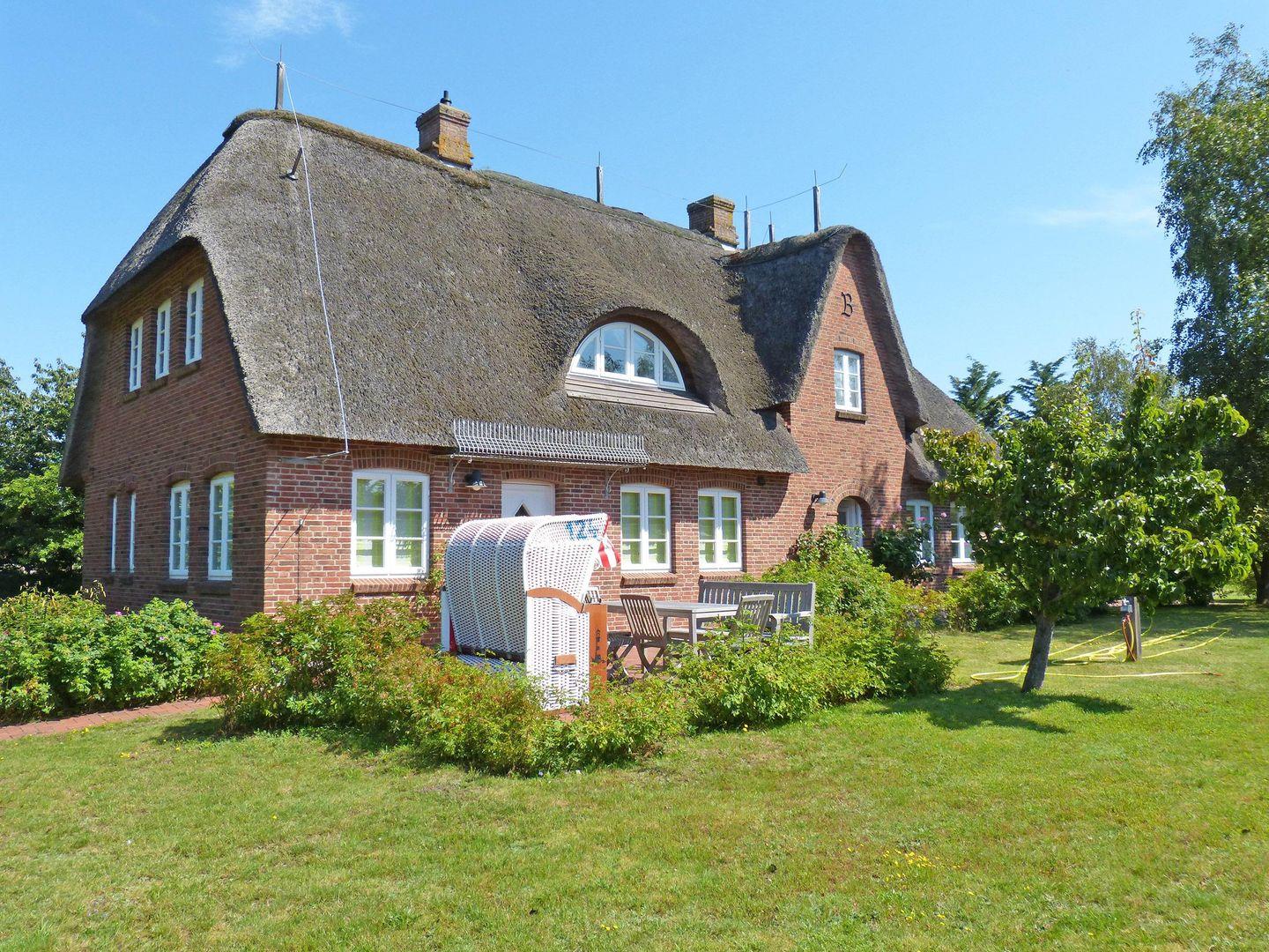Die 4-Zimmer-Friesenhaushälfte *Backbord* unter Reet (ca. 110 qm Grundfläche) über 2 Etagen im Strandweg 8 in Süddorf auf Amrum bietet Schlafmöglichkeiten für 2 bis 6 Personen.