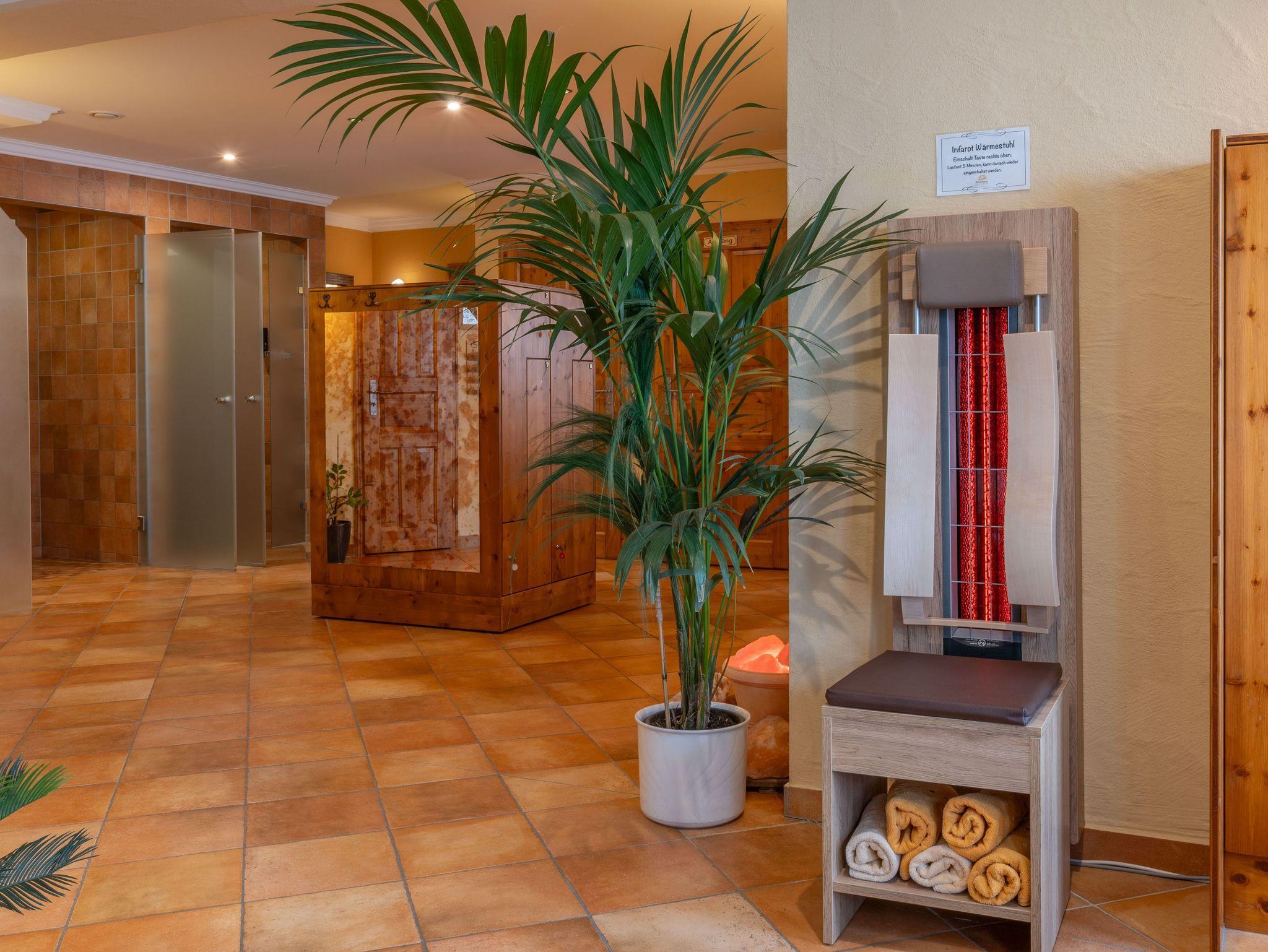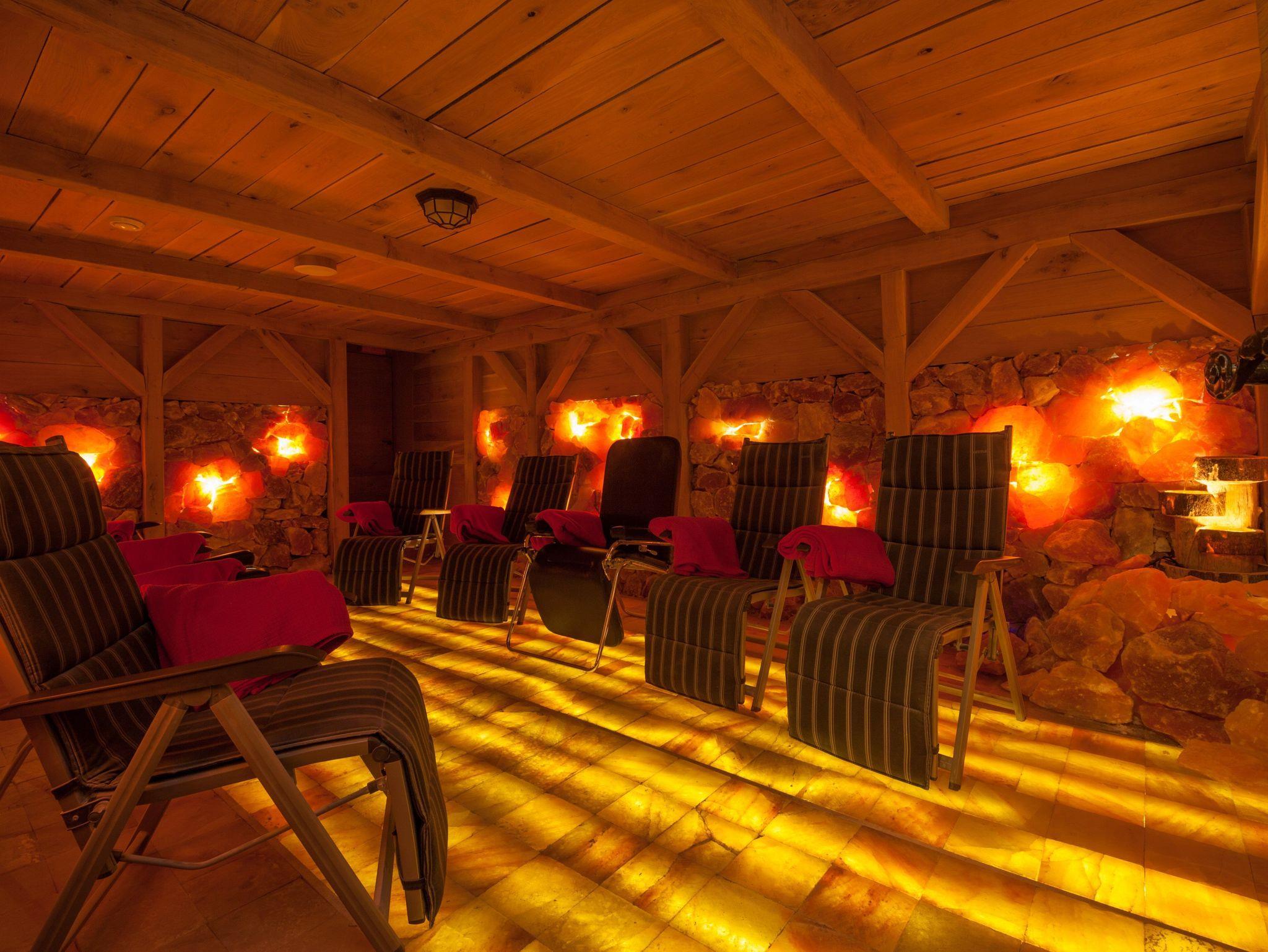 Unser Wellnessbereich bietet bei jeder Wetterlage die Nutzung einer klassischen Sauna, ein Dampfbad und ein Ruheraum sowie einer Salzgrotte und einem Salionarium. Zusätzlich bieten wir auch ayurvedische Massage an.