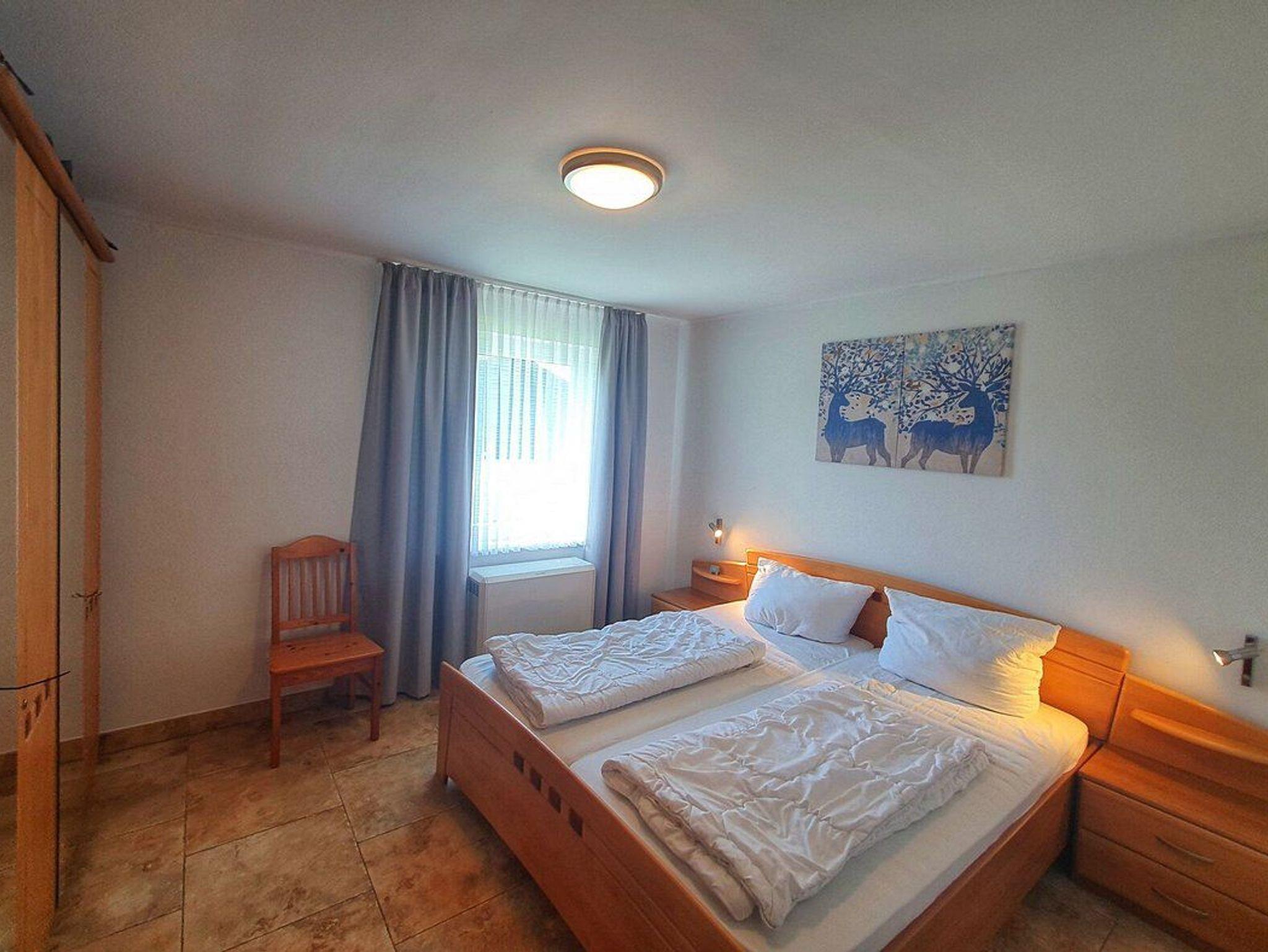Das Elternschlafzimmer ist mit einem Doppelbett und einem geräumigen Kleiderschrank eingerichtet. Im Kinderzimmer bzw. zweiten Schlafzimmer befinden sich zwei Stockbetten, in denen problemlos auch Erwachsene schlafen können.