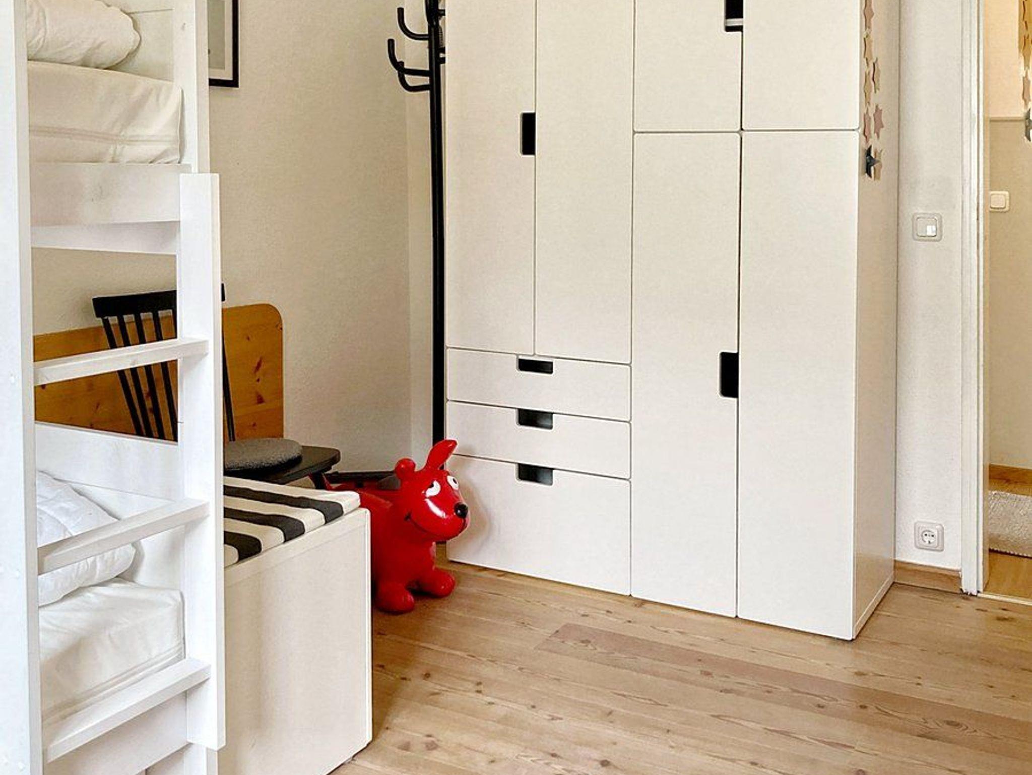 Die voll ausgestattete Küche verfügt über Herd, Geschirrspüler und Kühlschrank sowie alles für Kaffeeliebhaber: Espressokocher, French Press, Kaffeemaschine und Milchaufschäumer. Für Familien stehen ein Tripp-Trapp-Kinderstuhl mit entfernbarer Schale und ein liebevoll eingerichtetes Kinderzimmer mit Doppelstockbett bereit, inklusive einer Auswahl an Kinder- und Gesellschaftsspielen sowie Büchern.