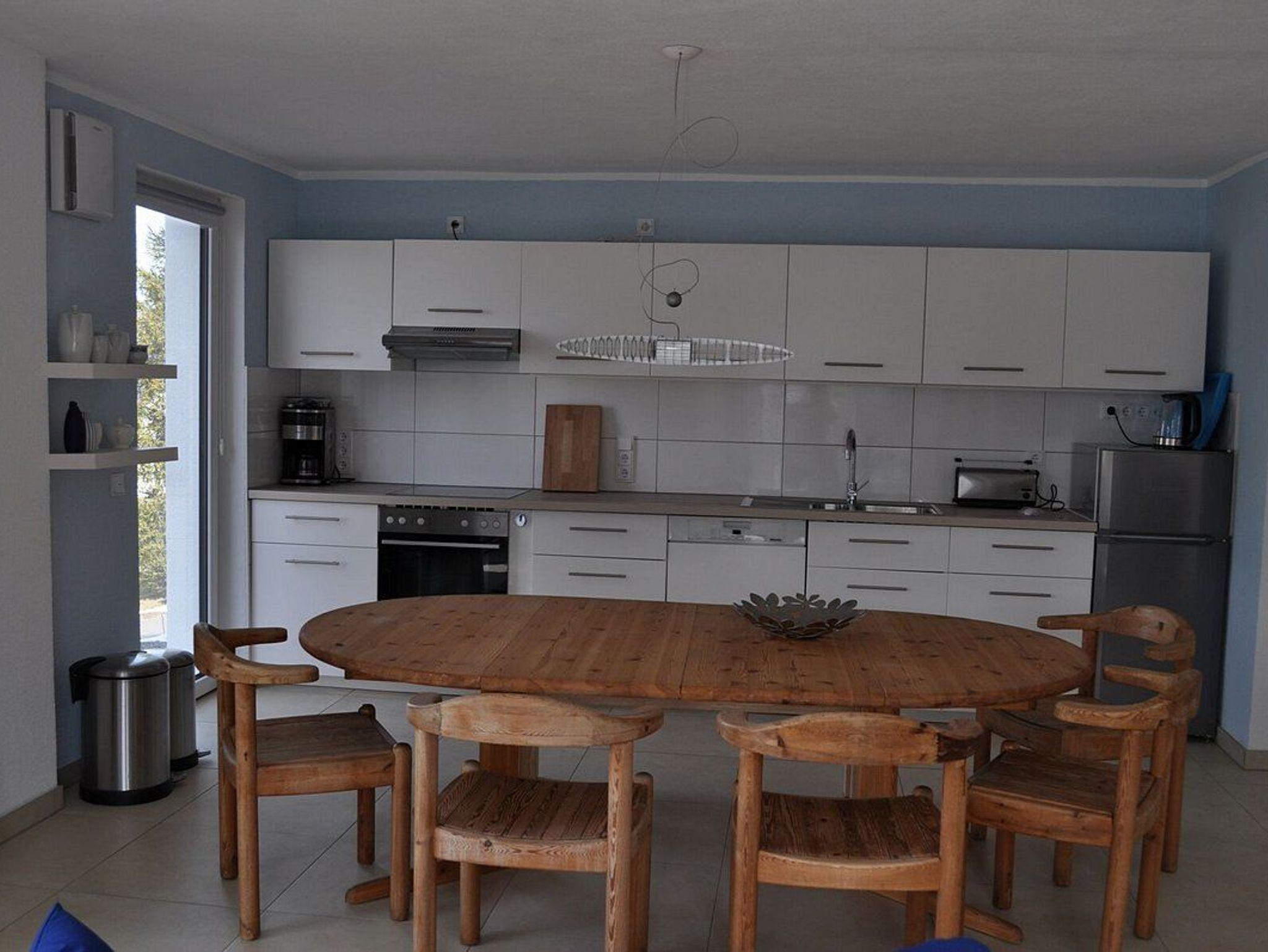 Das Ferienhaus wurde komplett renoviert und bietet Platz für bis zu 7 Personen. Es liegt in einer landschaftlich schönen Umgebung mit freiem Blick auf die Berge. Die offene Wohnküche mit einem großen Esstisch ist das zentrale Element des Hauses, ausgestattet mit modernen Geräten wie einer Kühl-/Gefrierkombination und Spülmaschine. Eine Fußbodenheizung sorgt für Wohlfühlatmosphäre. Das obere Stockwerk umfasst einen großen Aufenthaltsbereich, zwei Schlafzimmer mit Platz für Babybetten und ein weiteres Bad. Das Wohnzimmer ist mit einer großzügigen Couch und einem Flachbildfernseher ausgestattet. Eine große, sonnige Terrasse und eine weitere westlich ausgerichtete Terrasse bieten viel Platz im Freien. In der Garage können Fahrräder oder Angelutensilien verstaut werden.