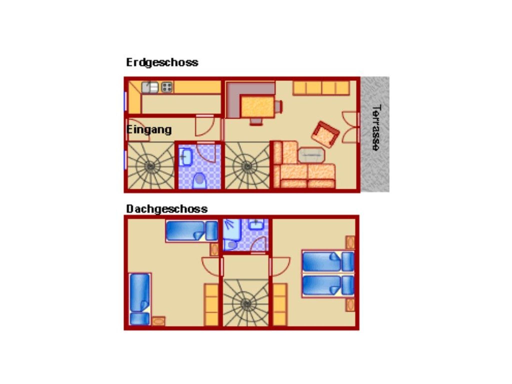 Die Ausstattung umfasst eine Küche mit Geschirrspüler, Wohn- und Essbereich, SAT-TV und Stereoanlage. Im Obergeschoss gibt es zwei Schlafzimmer mit Doppelbetten und ein modernes Bad. Im Untergeschoss befindet sich der Haustechnikraum mit Waschmaschine und drei Ladeports für E-Bikes.